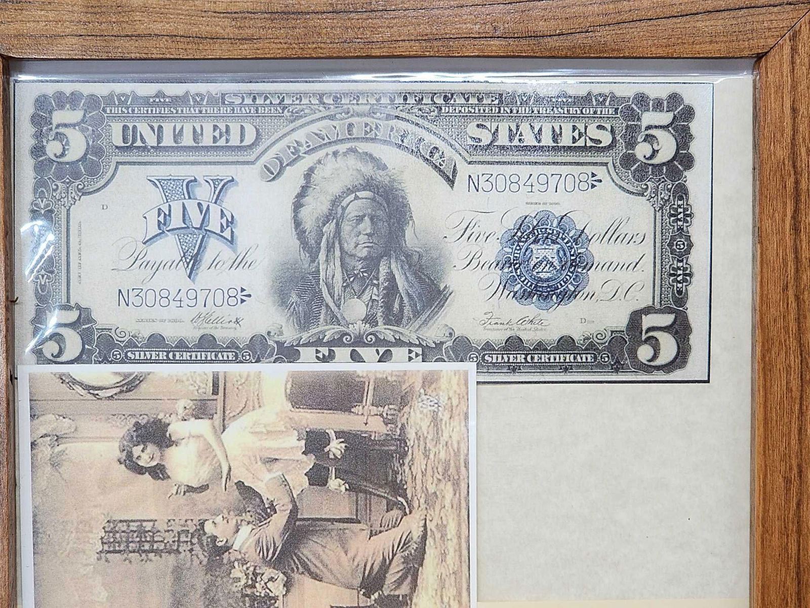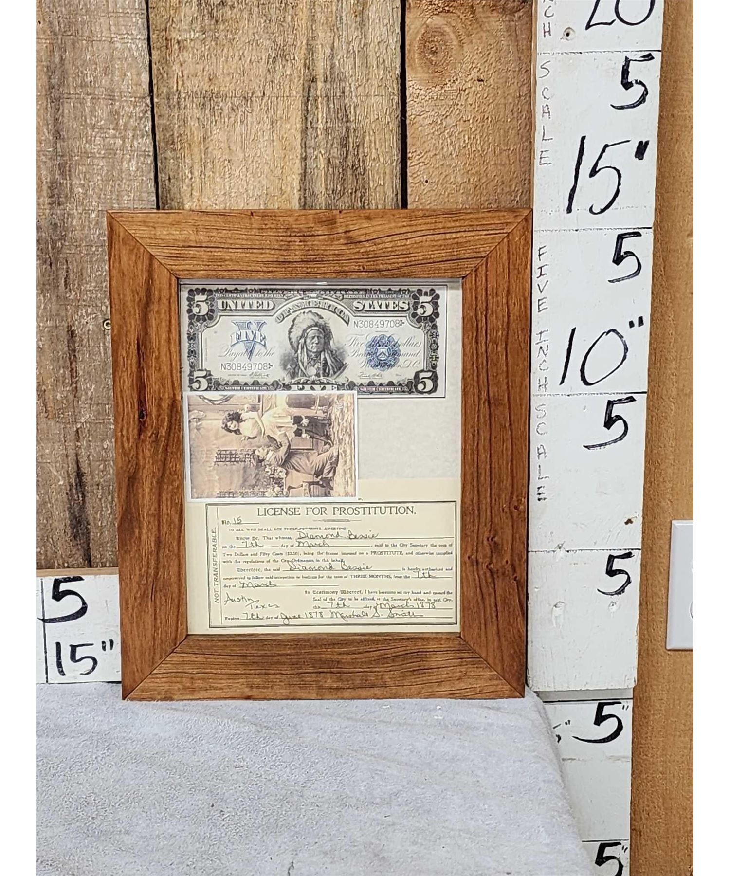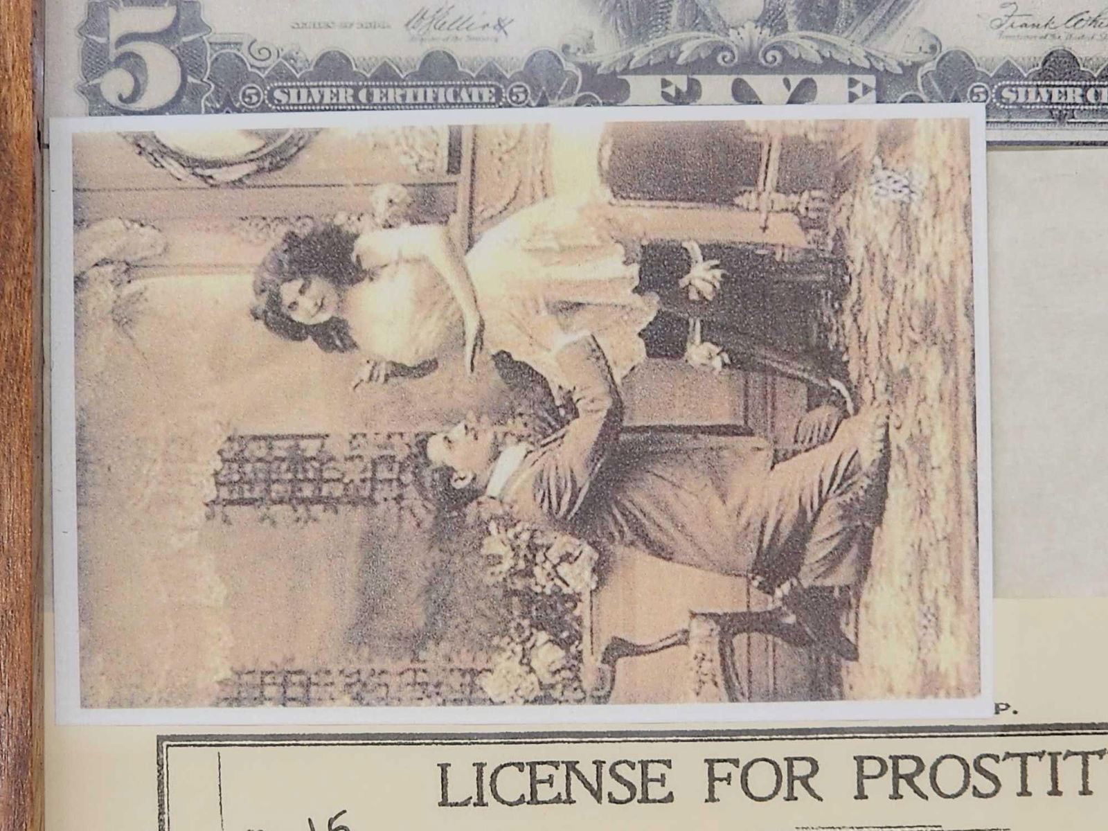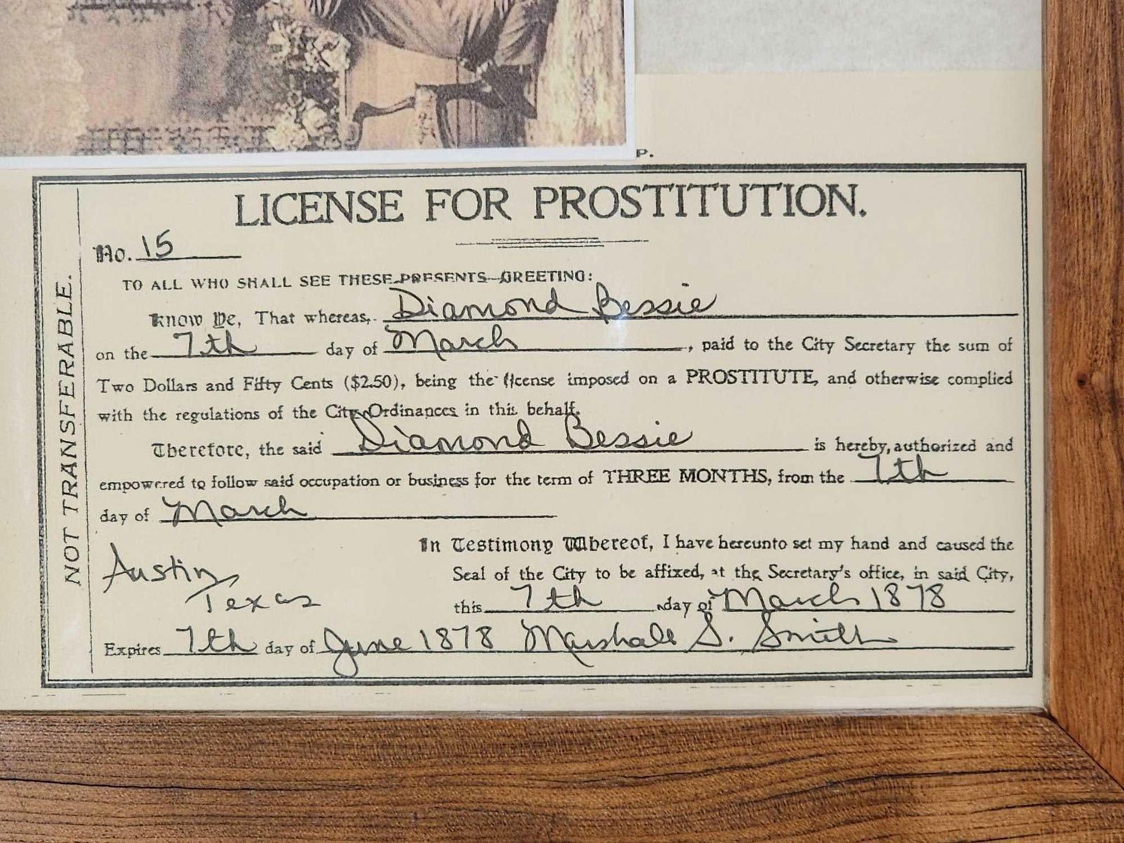1.19 Great conversation piece in hand Made cherry wood frame issued to Madam Diamond Bessie Austin Texas