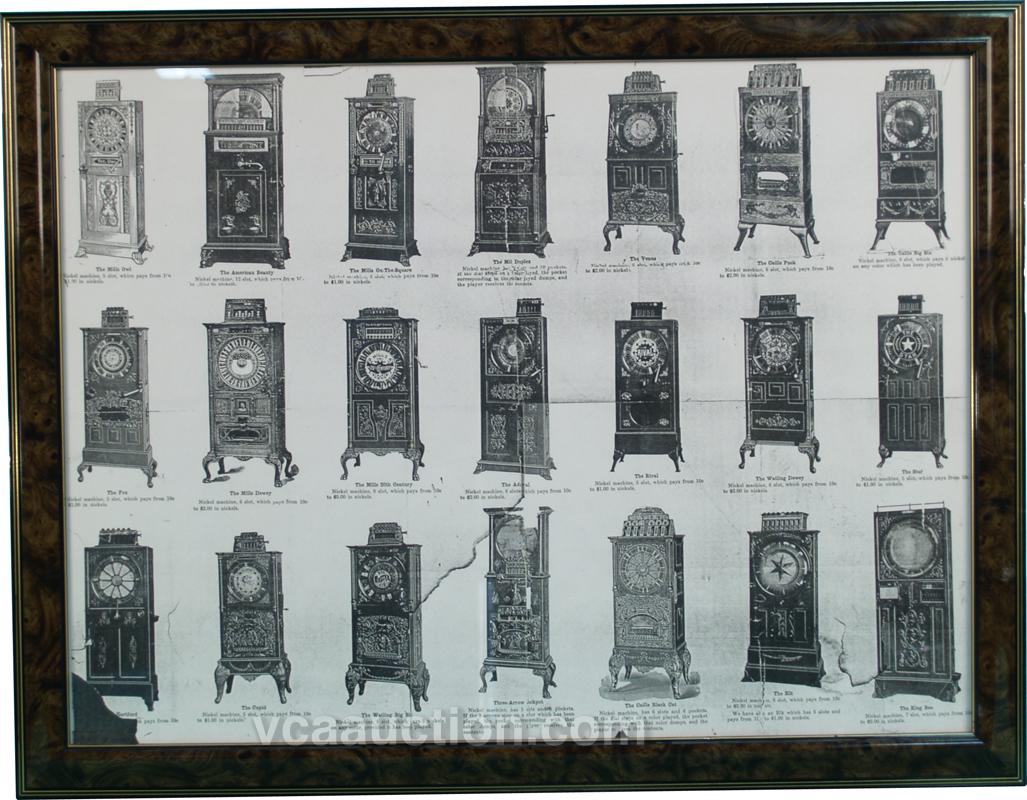 Copy Of Ad Showing 21 Different Upright Slot Machines, Framed - 26" x 21"