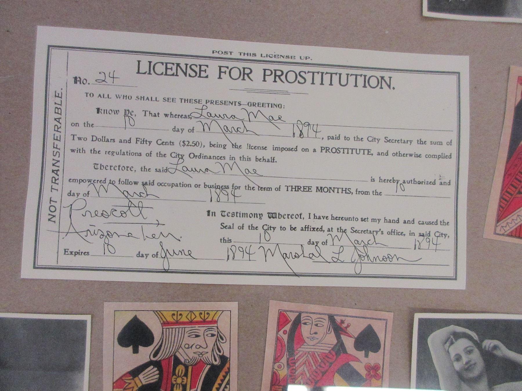 Copy Of License For Prostitution- 1894 Prescott Arizona- 24" X 21"