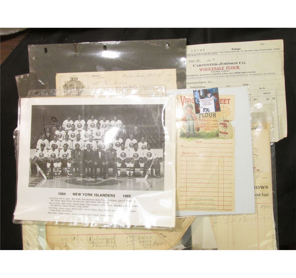 Copy of Photo 1984 New York Islanders; & a large selection of "Flour" memorabilia (invoices, letter heads, etc.) dating back to 1884.