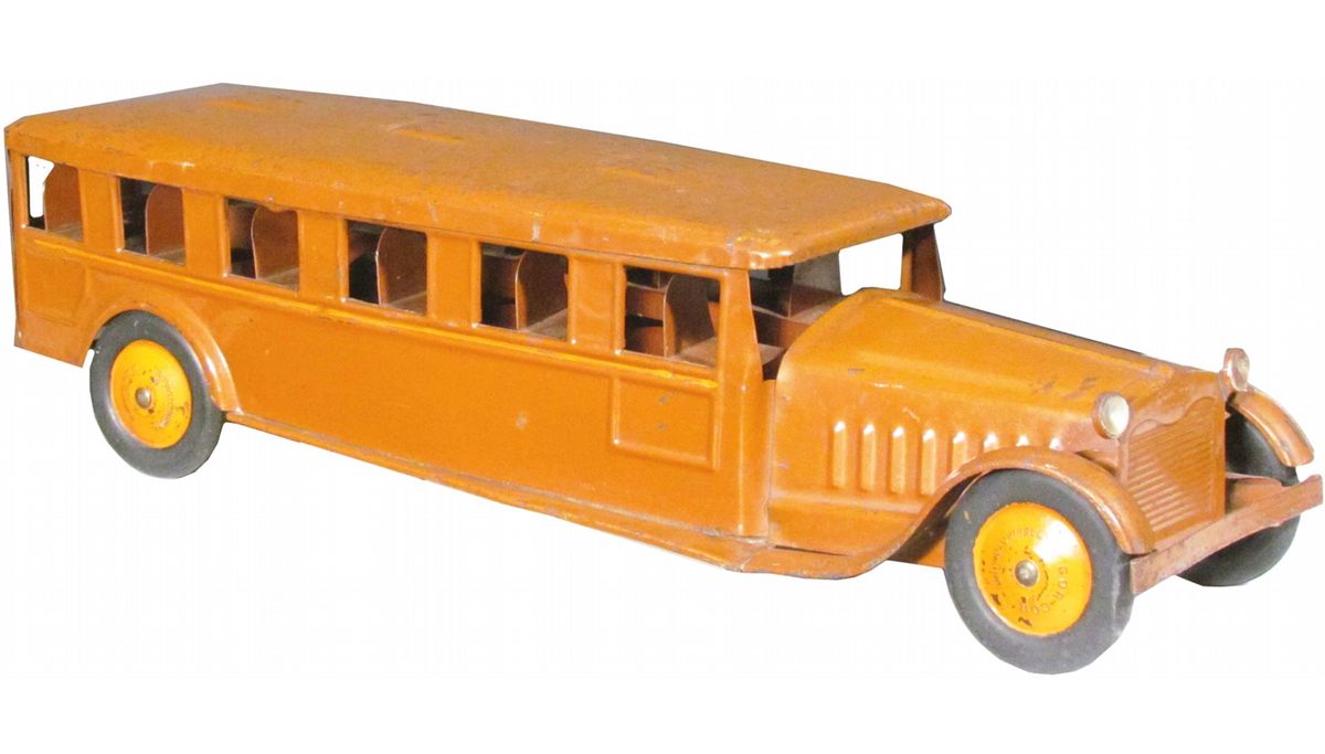 1930's Cor-Cor Pressed Steel Coast to Coast Toy Bus. Good all original played with condition. 24 inches long.