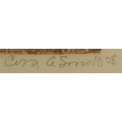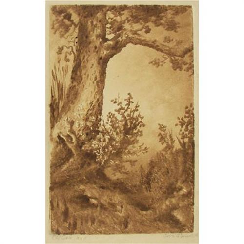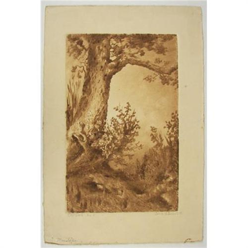Cora A. Smith (1875-?) Monotype, "Old Oak No. 1", 1928, image size 7 7/8" x 4 7/8", pencil signed