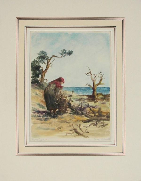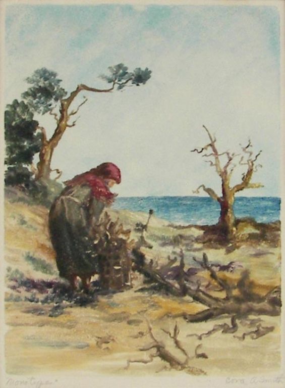 Cora Smith, Monotype , (5749) Cora A. Smith (1875-1942) (California), Monotype, "Woman by the Sea", Image Size 7 3/4" x 6", Pencil Signed