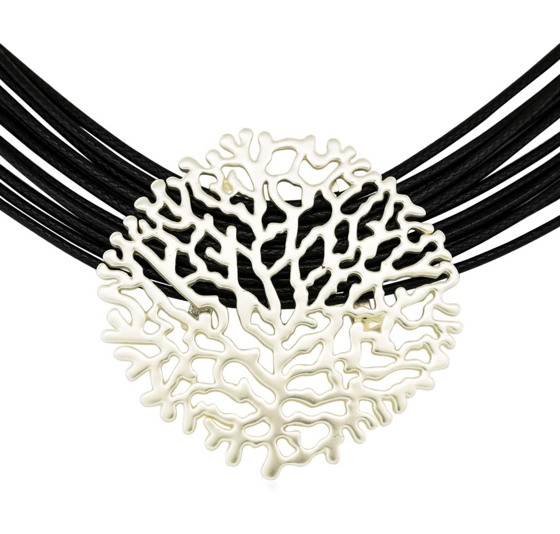 High end designer jewelry. Coral Branch Multi Strand Necklace - Rhodium Plated. Rhodium Plated/3" Ext Clasp. Black/ Silver. 16inches. Total Weight: 31.9 grams.
