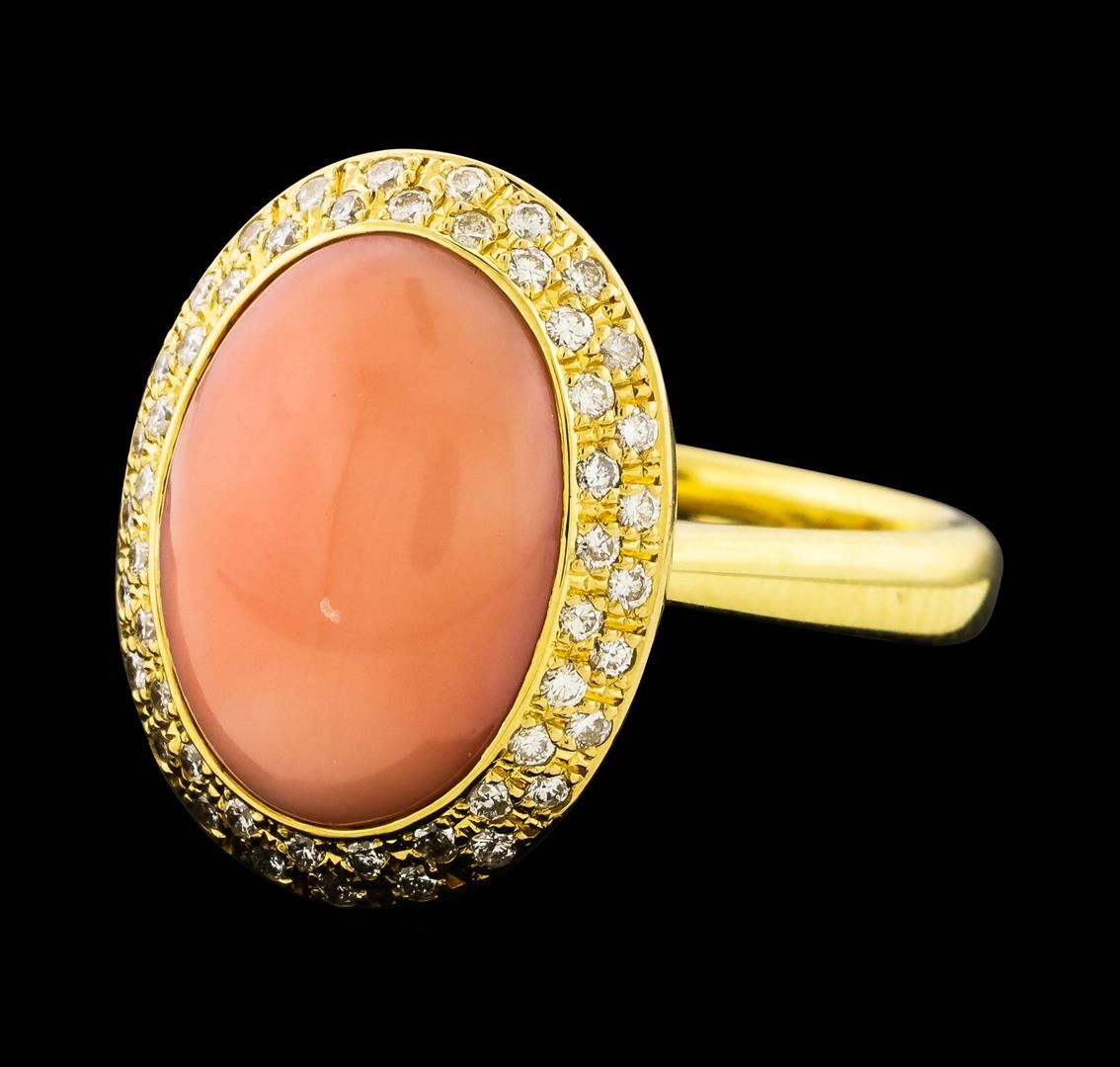 One ring featuring: 18KT Yellow Gold containing Coral and Diamonds with a total weight of 0.38ct. Total Weight of Ring: 10 grams.