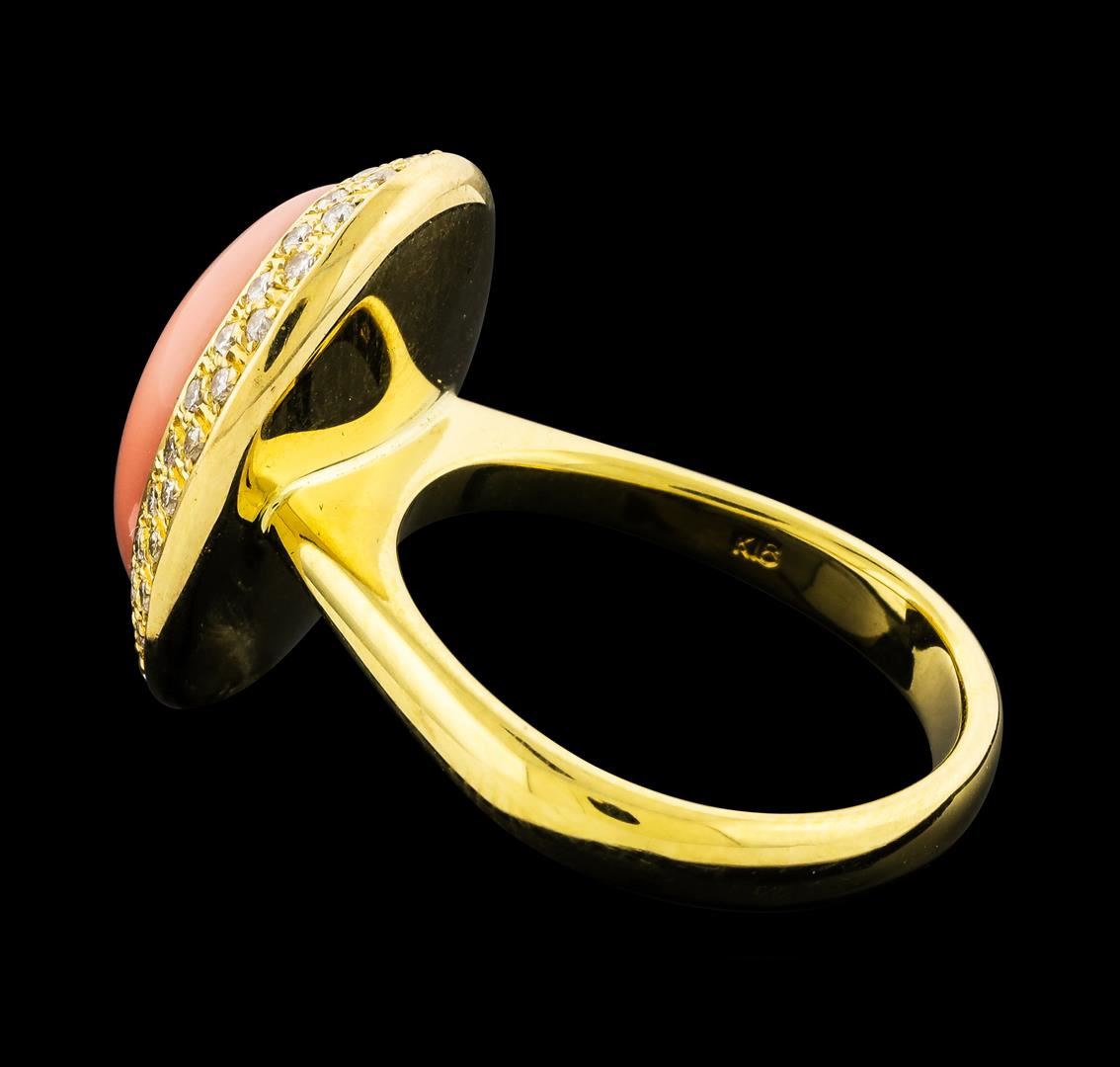 One ring featuring: 18KT Yellow Gold containing Coral and Diamonds with a total weight of 0.38ct. Total Weight of Ring: 10 grams.
