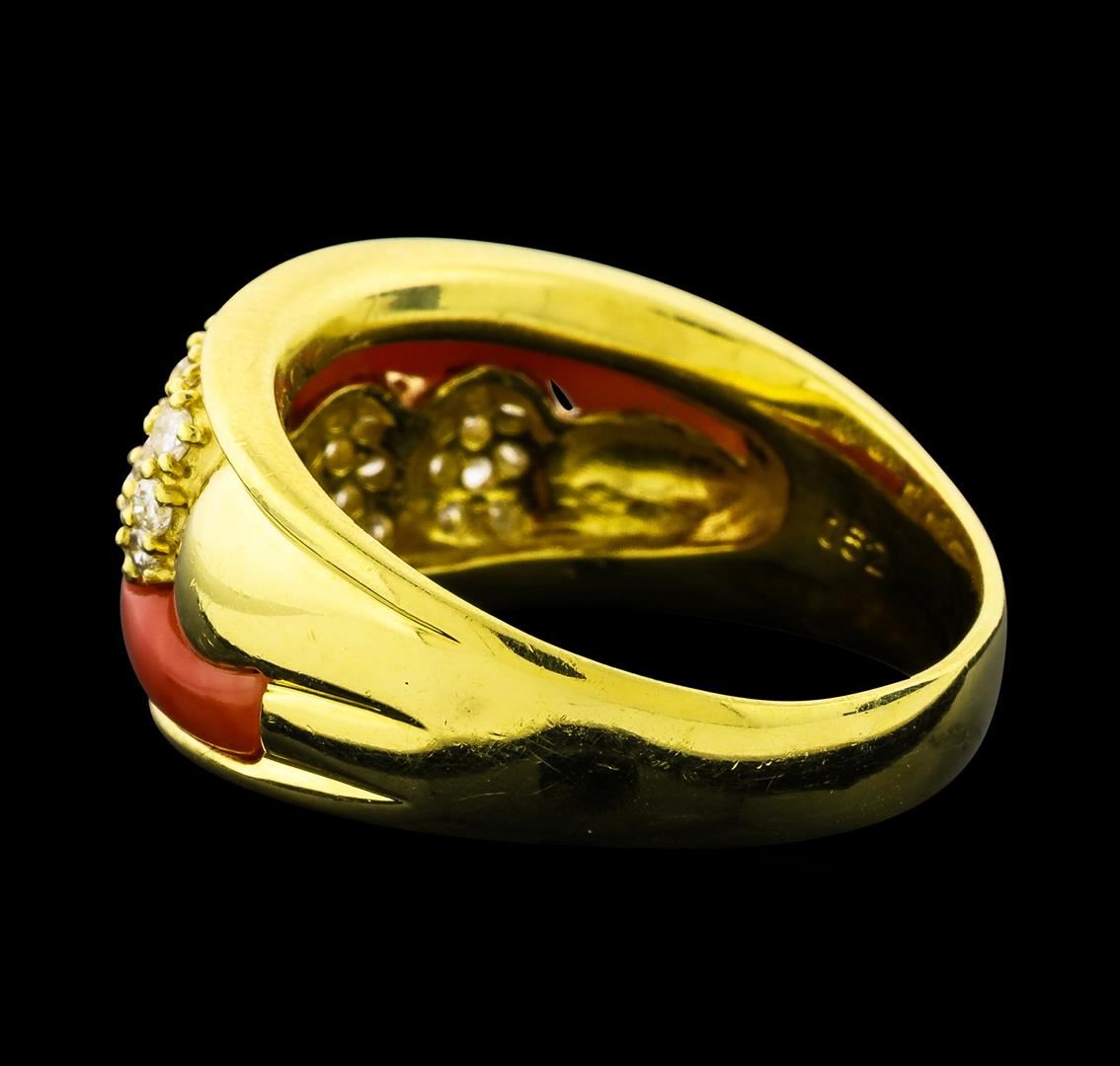 One ring featuring: 18KT Yellow Gold containing Coral and Diamonds with a total weight of 0.52ct. Total Weight of Ring: 8 grams.