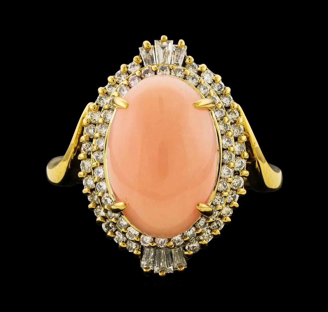 One ring featuring: 18KT Yellow Gold containing Coral and Diamonds with a total weight of 0.53ct. Total Weight of Ring: 6.5 grams.