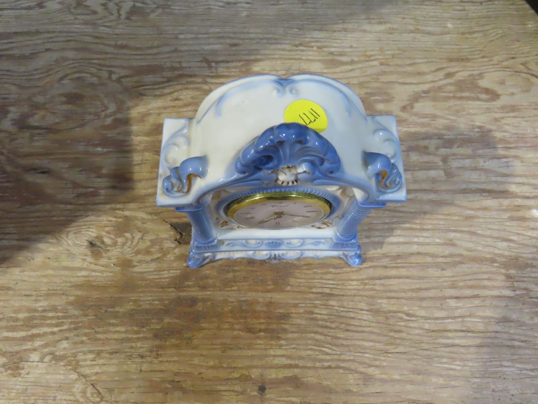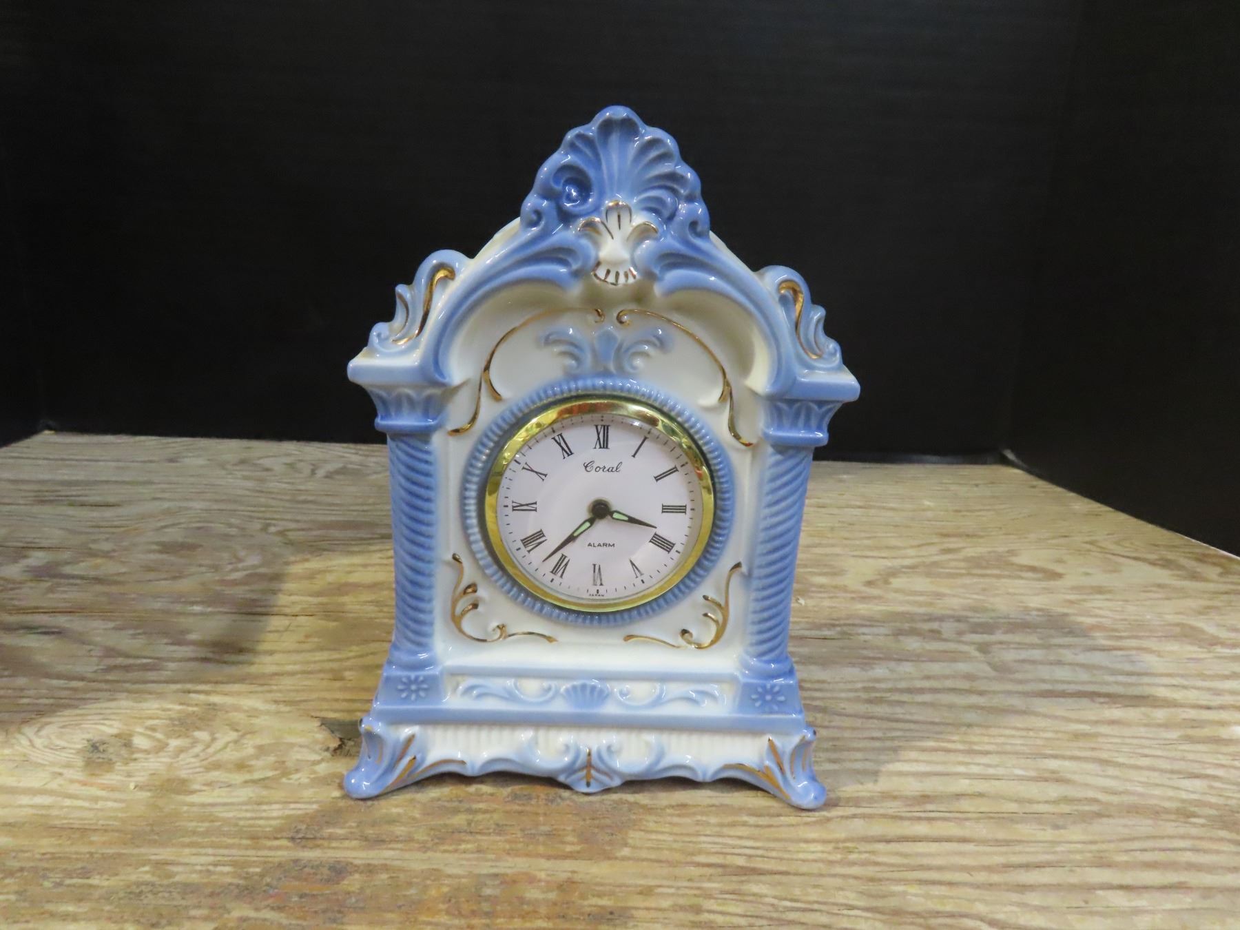 Coral brand, wind up, ceramic table clock, 5"x7x2.5"