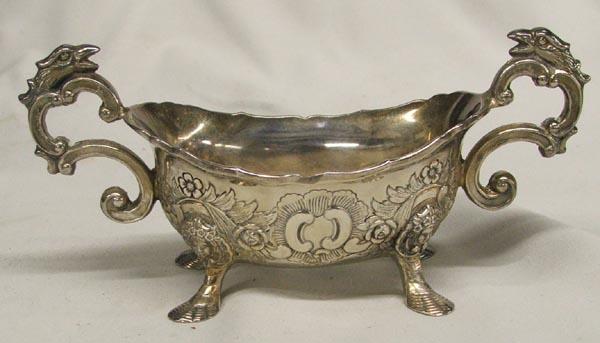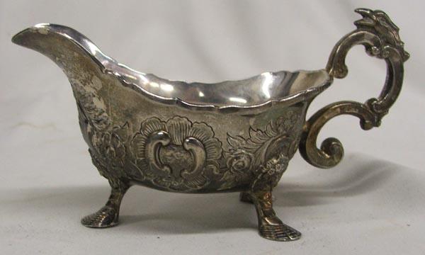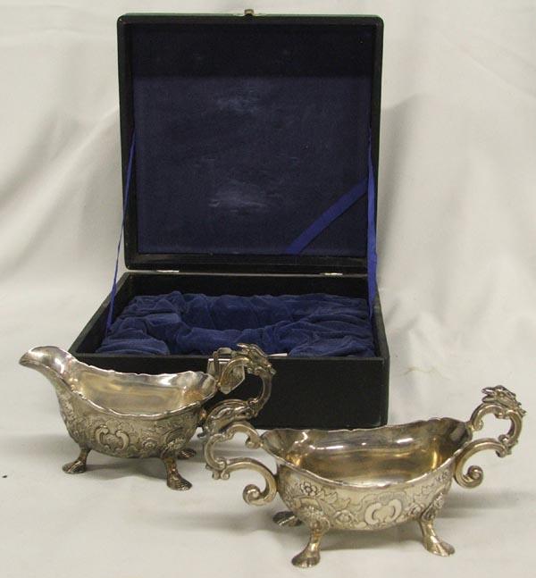 Corbel Silver Queen Ann Style Cream and Sugar in display box, information inside box reads: From an original---Monteith bowl with lions head masks. Queen Anne fluting on body. Date 1709 Longon, England by Edmund Pearse, measures approx. 3'' x 6.5'' and the display box measures 8'' x 8''. SHI $25.