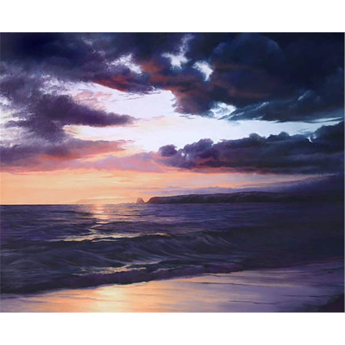 "I started using pastels fairly recently and I'm amazed that I had neglected this wonderful medium for so many years. Pastels are instant, I can put on broad sweeps of colour and the card is transformed. I start by putting on the colours very roughly, which gives me the mood of the picture. I work on card, which has a sand texture. This suits my style as it allows me to put the pastels on quite thickly and merge them together creating a feeling of movement, which is perfect for my subject, be it clouds or sea. I put on layers of different colours and then blend them, creating either a soft feeling for the sky or rolling waves and surf of the sea - I just let it 'happen'.