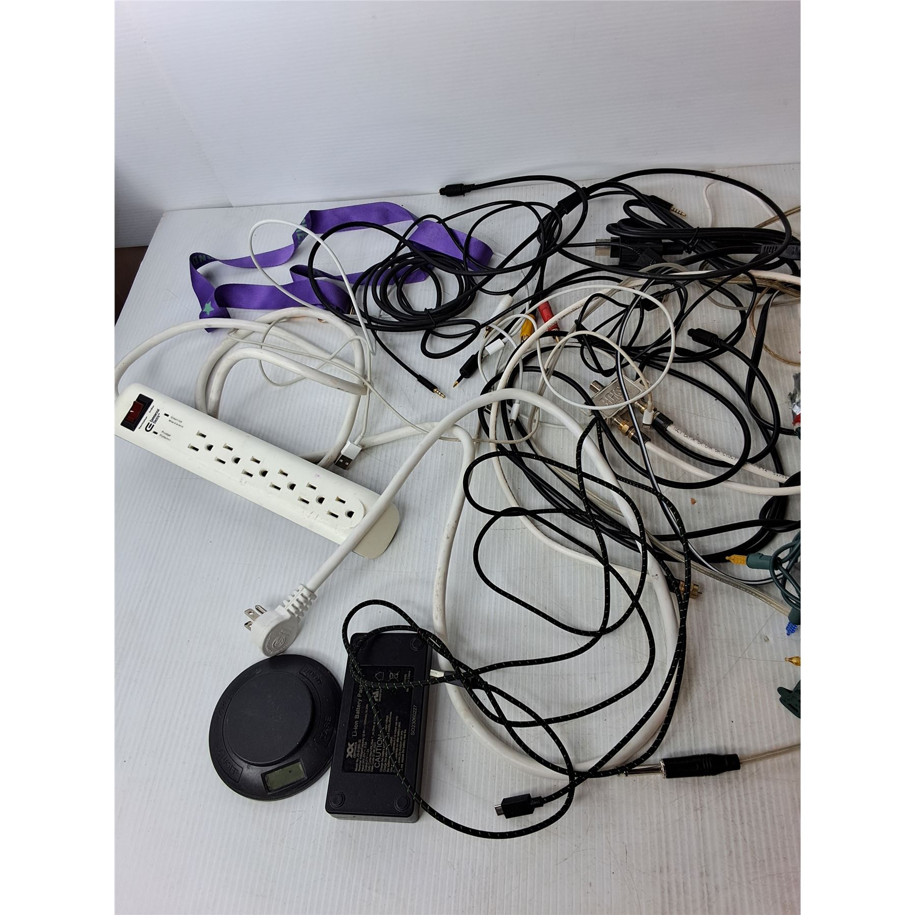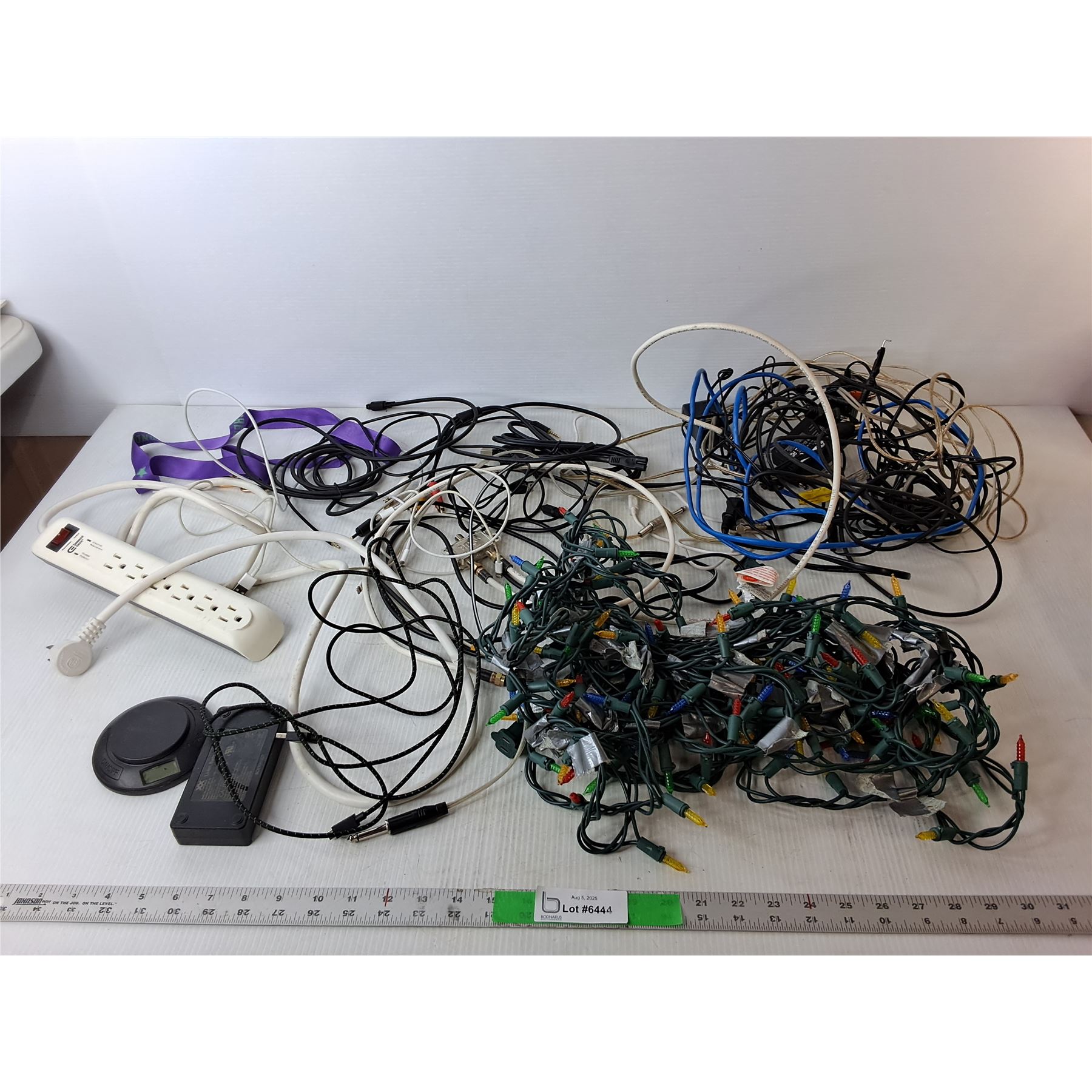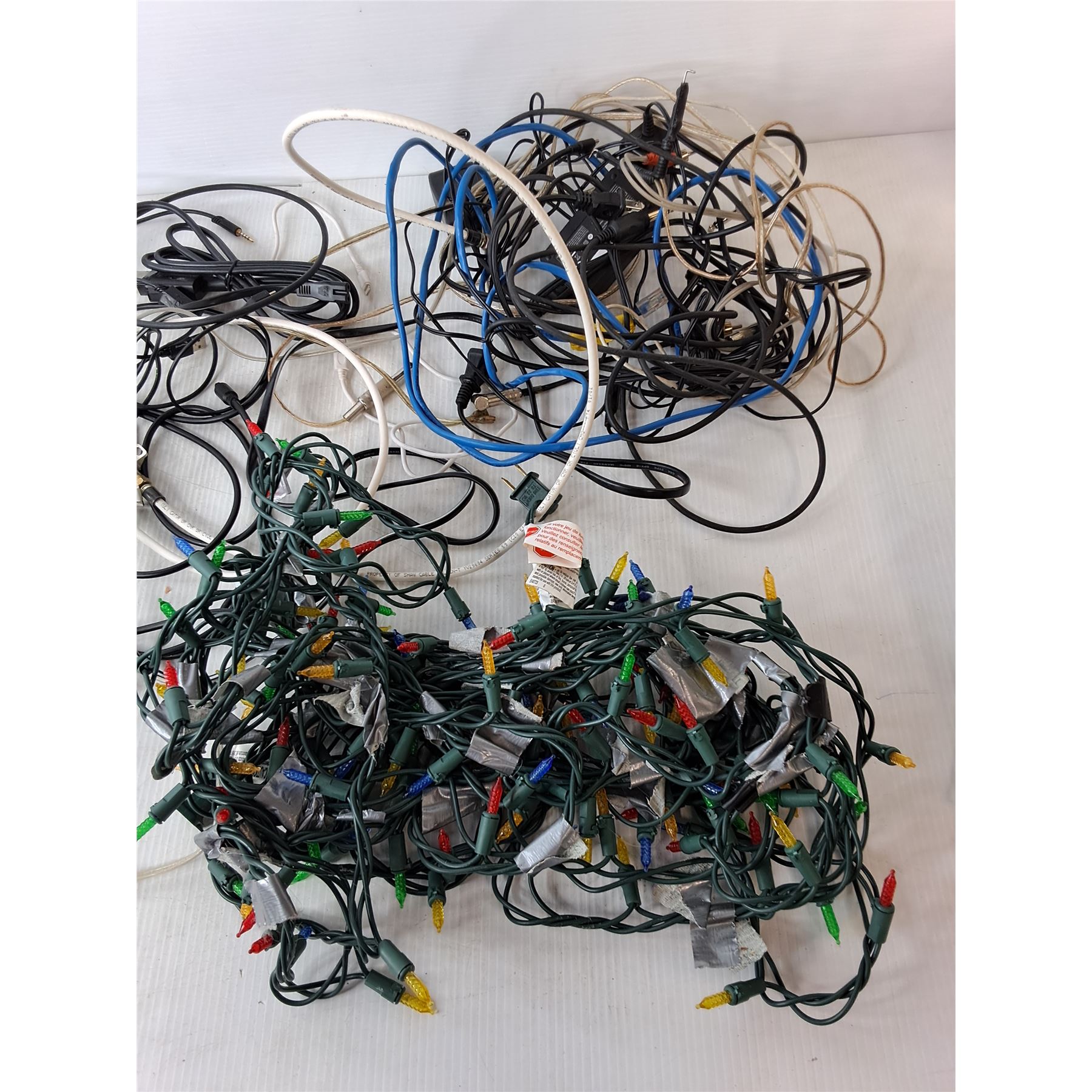 Cord Lot- Power Bar & Christmas Lights- Both Working, Micro USB, Misc.