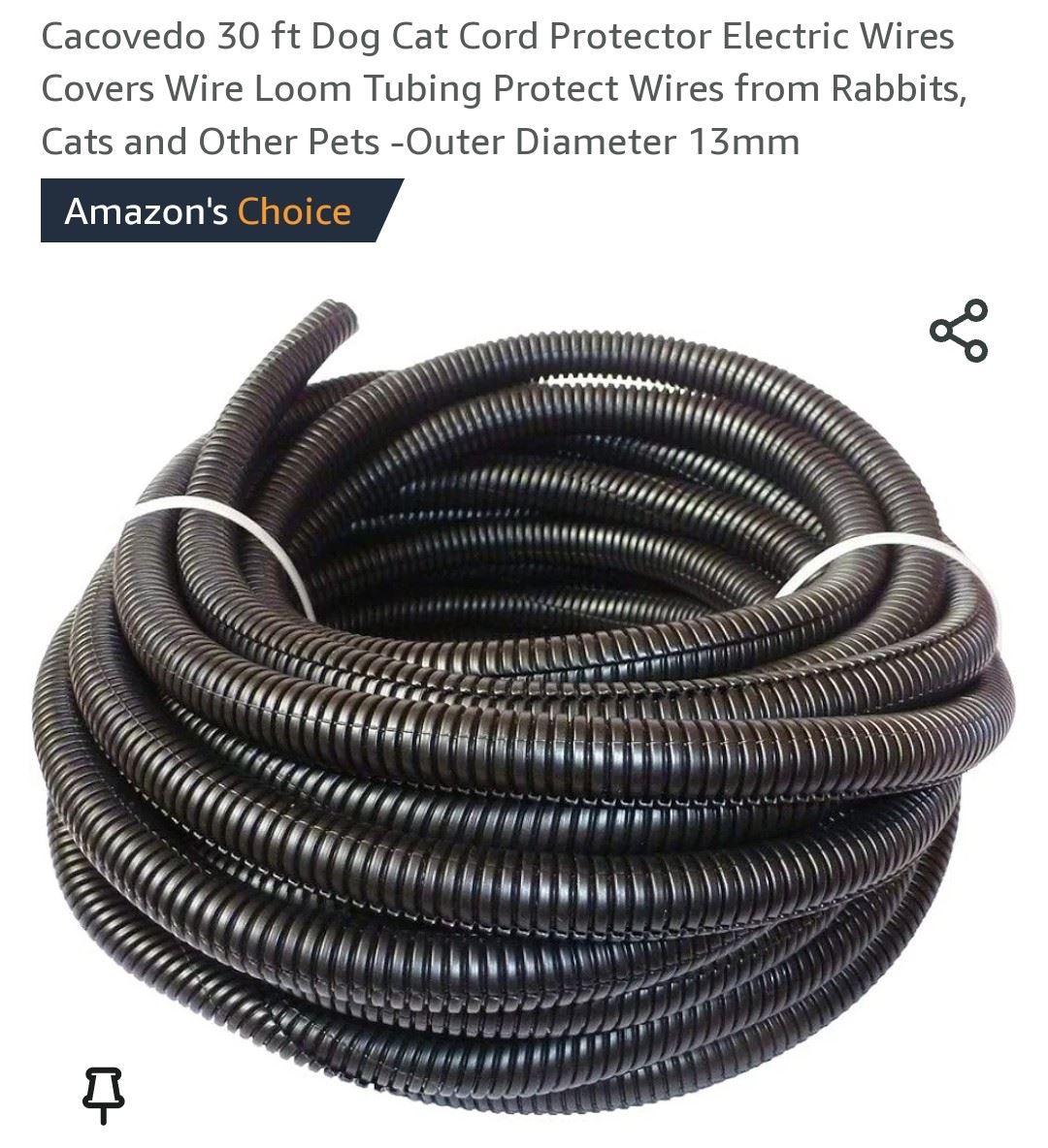 Flexible 30 ft protective tubing for cables, pet-resistant material, 13mm outer diameter, new.