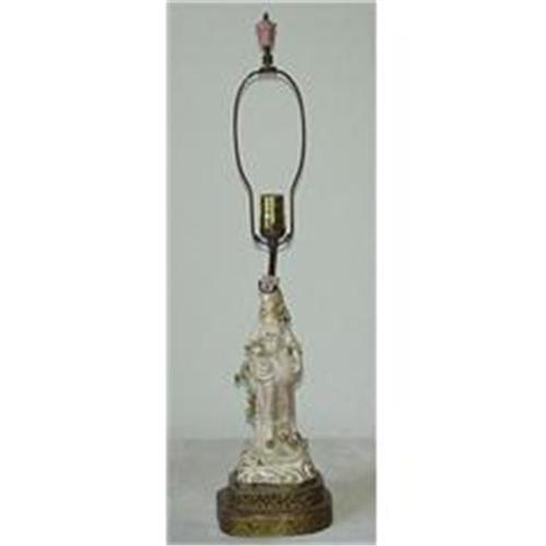 <table width="100%" border="0" cellspacing="0" cellpadding="4"><tr><td><em> </em></td></tr><tr> <td width="100%"> A cordey figural lamp, the female figure is 11" tall, the overall height of the lamp is 24". The figure in 18th century dress is wearing a hat adorned with roses, her hair is down, leaves and flowers decorate the base and her cuffs and hem are decorated with lace. The condition is very good, there is some damage to the lace on ther left arm, otherwise the figure needs a good cleaning. The wiring is intact but a rewiring is recommended. Pink porcelain finial. (4) </td></tr><tr> <td> </td></tr><tr> <td>Reference #: 5397_101</td></tr><tr><td>Condition:good</td></tr><tr><td>Year:early 20th century</td></tr><tr><td>Title:Cordey Lamp SKU 5397</td></tr><tr><td>Location:Fort Lauderdale, Florida</td></tr></table>
