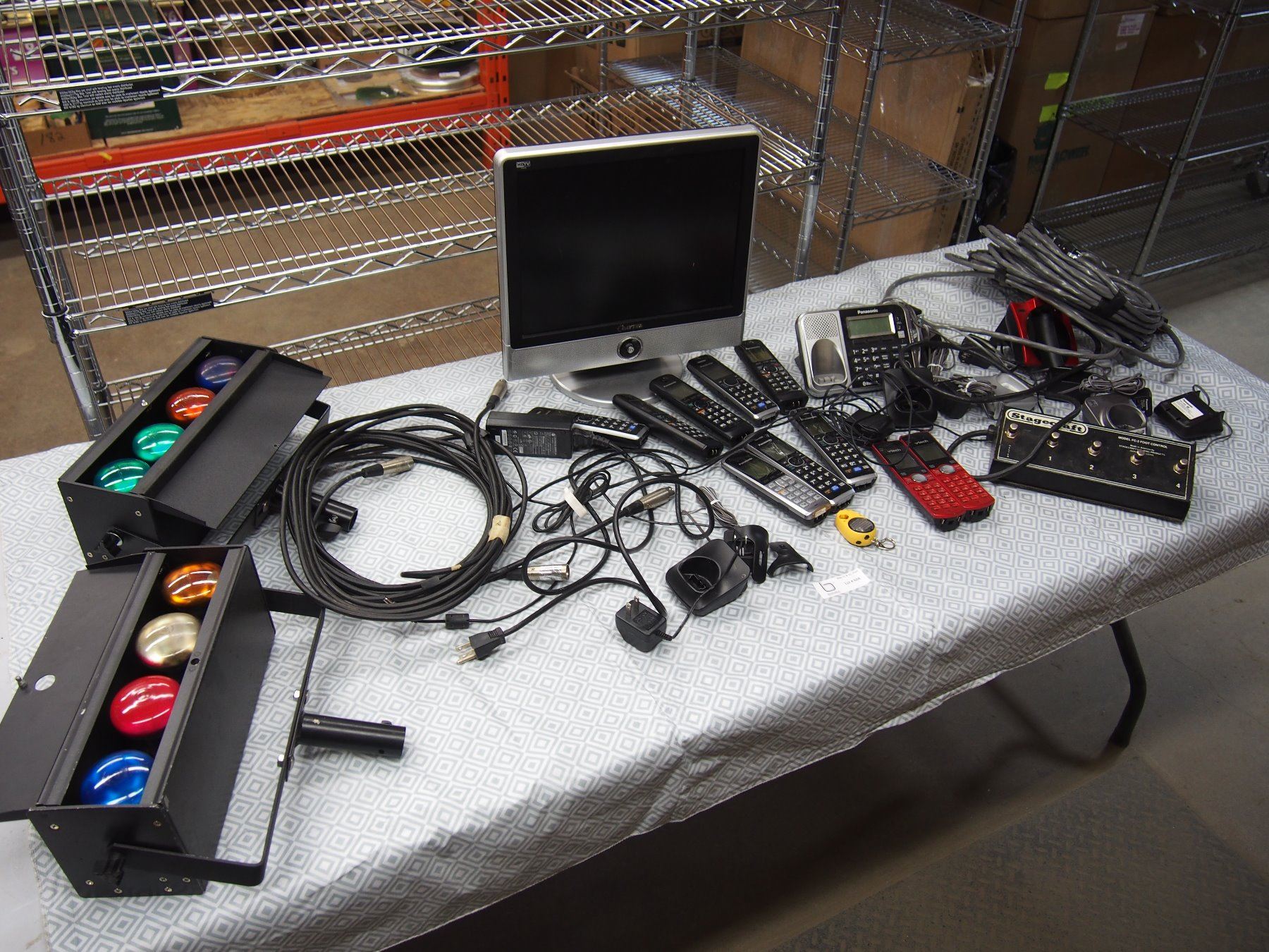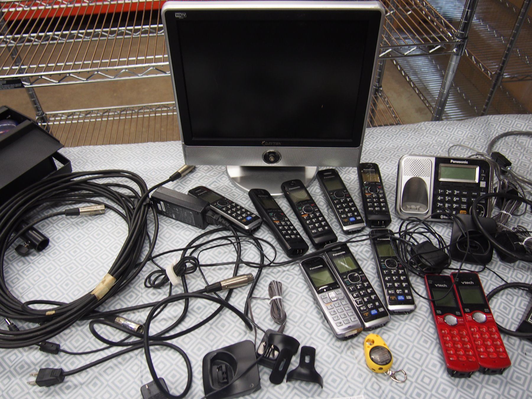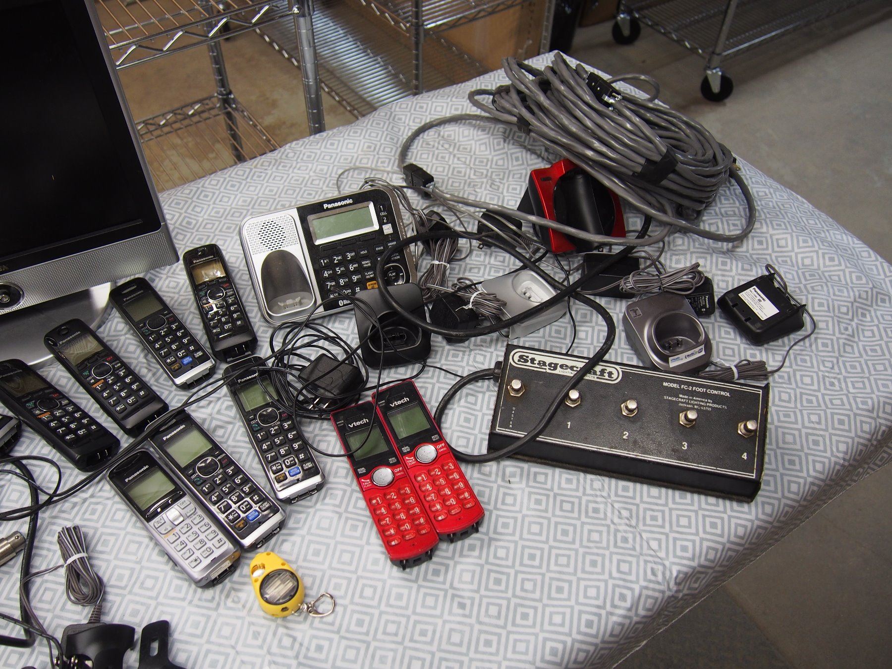 Cordless Telephones: multicolored lights, microphone cables, foot control, monitor, etc
