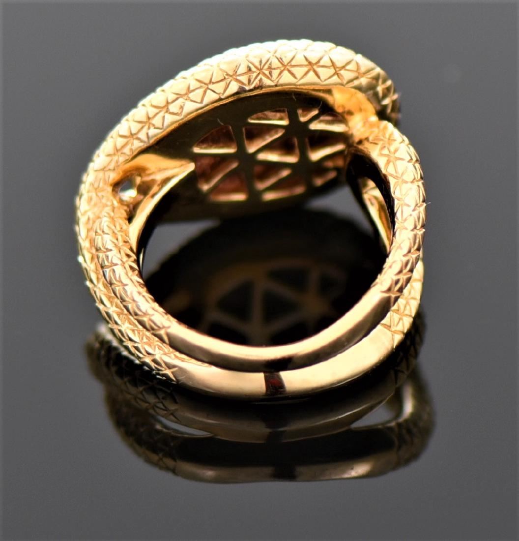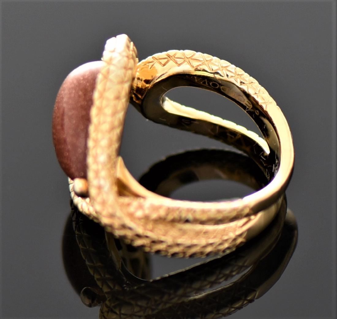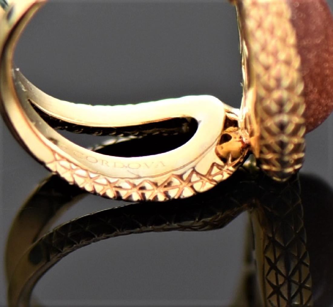 Cordova Snake Ring, Brown Goldstone With Gold Over Sterling Silver Ring. Ring Size 7. Estimated less than 50 yrs old. 925 Sterling Silver consisting of 92.5% silver and 7.5% copper. Tested Positive using Nitric Acid Chemical Scratch Test, Cloth Rub Test, Smell Test, and Magnet Test. No Markings. The reason silver needs to be combined with other metals is that it is very difficult to make great designs with just pure silver, which is very soft and malleable. A bit of hardness has to be introduced by adding other metals such as copper. That is why jewelers are capable of making the most intricate an complex designs with 925 Sterling Silver. Silver is one of the most valuable elements next to gold. Mexico is the leading producer of sliver, followed by the United States, Canada, Australia, Spain, Peru, and Russia. Many countries do not require their precious metal items to be stamped and therefore we test to ensure we accurately represent the product. Size and/or Weight: See Measurement Photo. (Photos Represent The Lot Condition.)