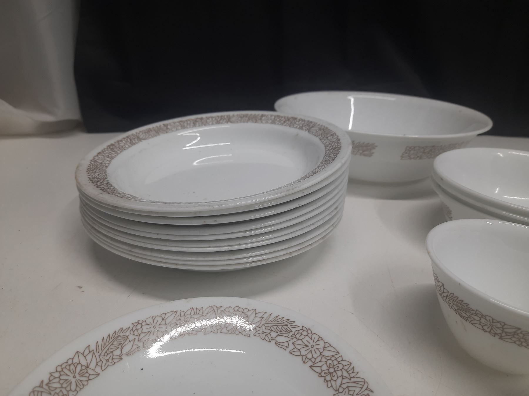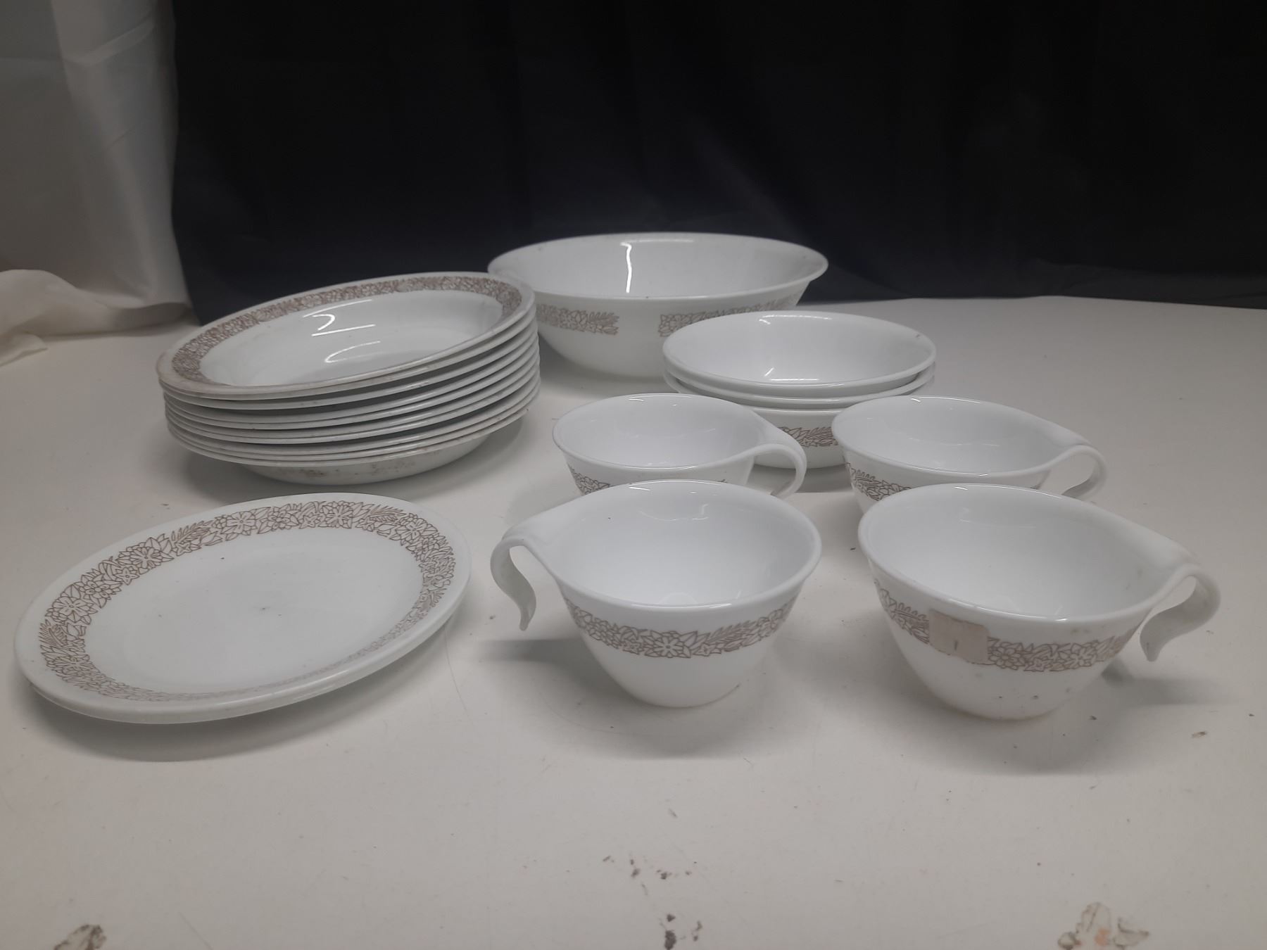 Corelle by Corning - 10 Rim Soup Bowls, 4 Tea Cup, 2 Small Plates, 3 Bowls, 1 Large Bowl.