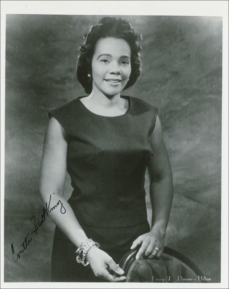 Glossy 8 x 10 portrait, signed in black felt tip. In fine condition, with small creases to top corner tips, a bit of slight crazing to finish, and impressions from notations on reverse along top edge.