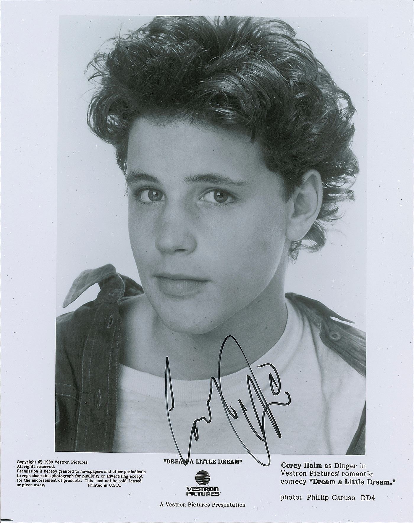 Glossy 8 x 10 Vestron Pictures publicity photo of Haim as Dinger from the 1989 film Dream a Little Dream, signed in black felt tip. In fine condition. From the Harvey and Rhoda Kuflik Collection.