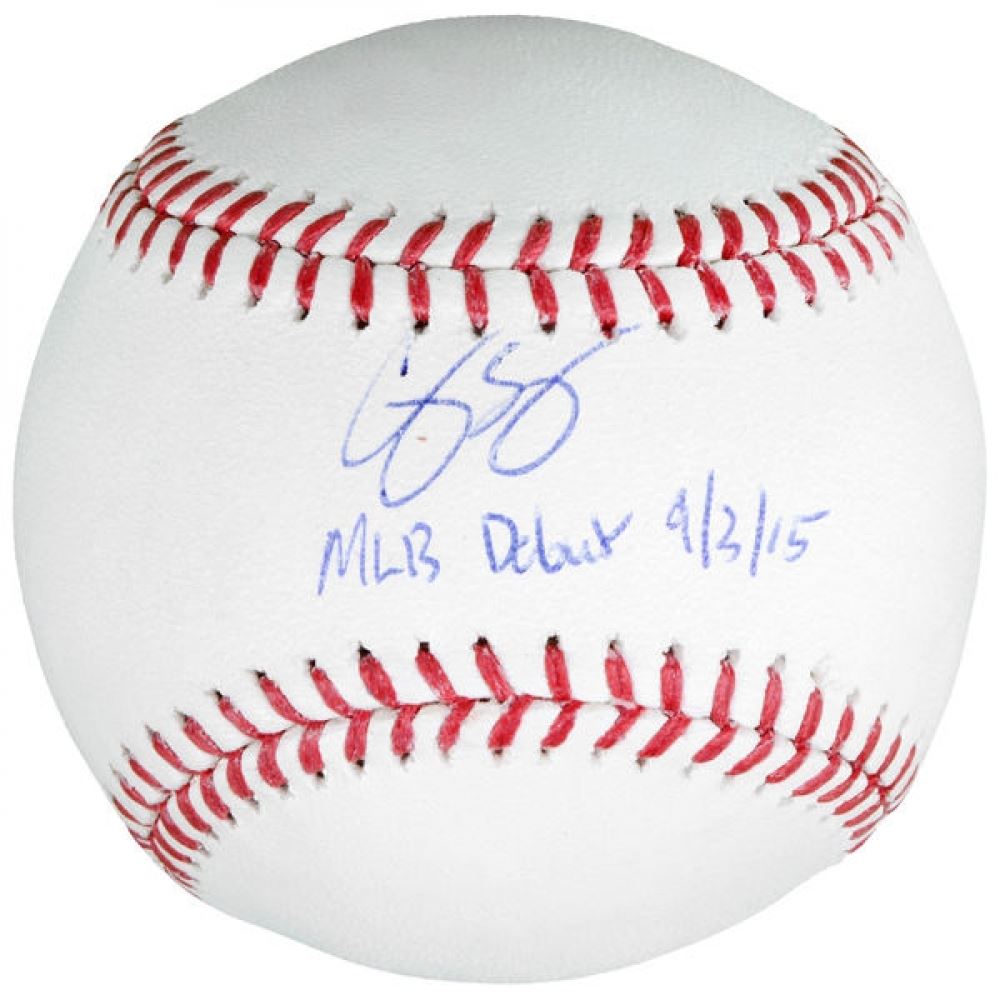 Baseball has been hand-signed and inscribed in blue ink pen by Corey Seager (Dodgers).