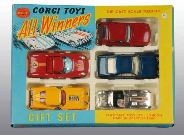 Description Circa 1966 to 1969. Extremely scarce. Cars appear to be unused and plastic cones are still sealed in their original plastic bag. Includes original box with original plastic and styrofoam insert. Slight creasing to cardboard. Condition (Very Good - Excellent). Size 8" x 10".