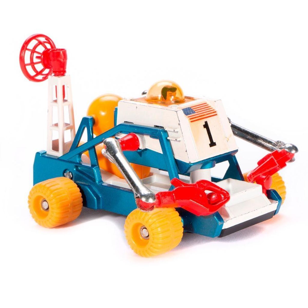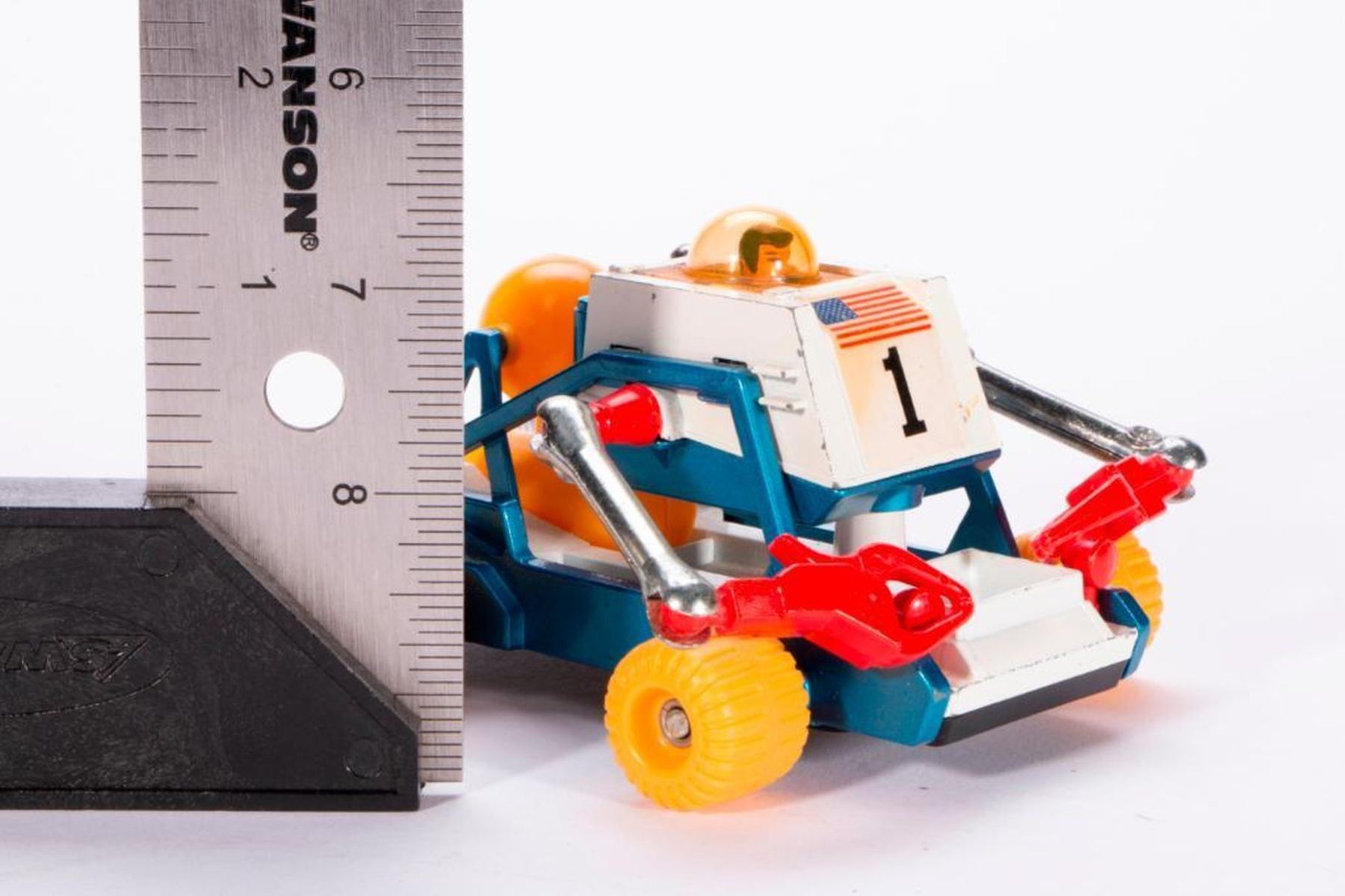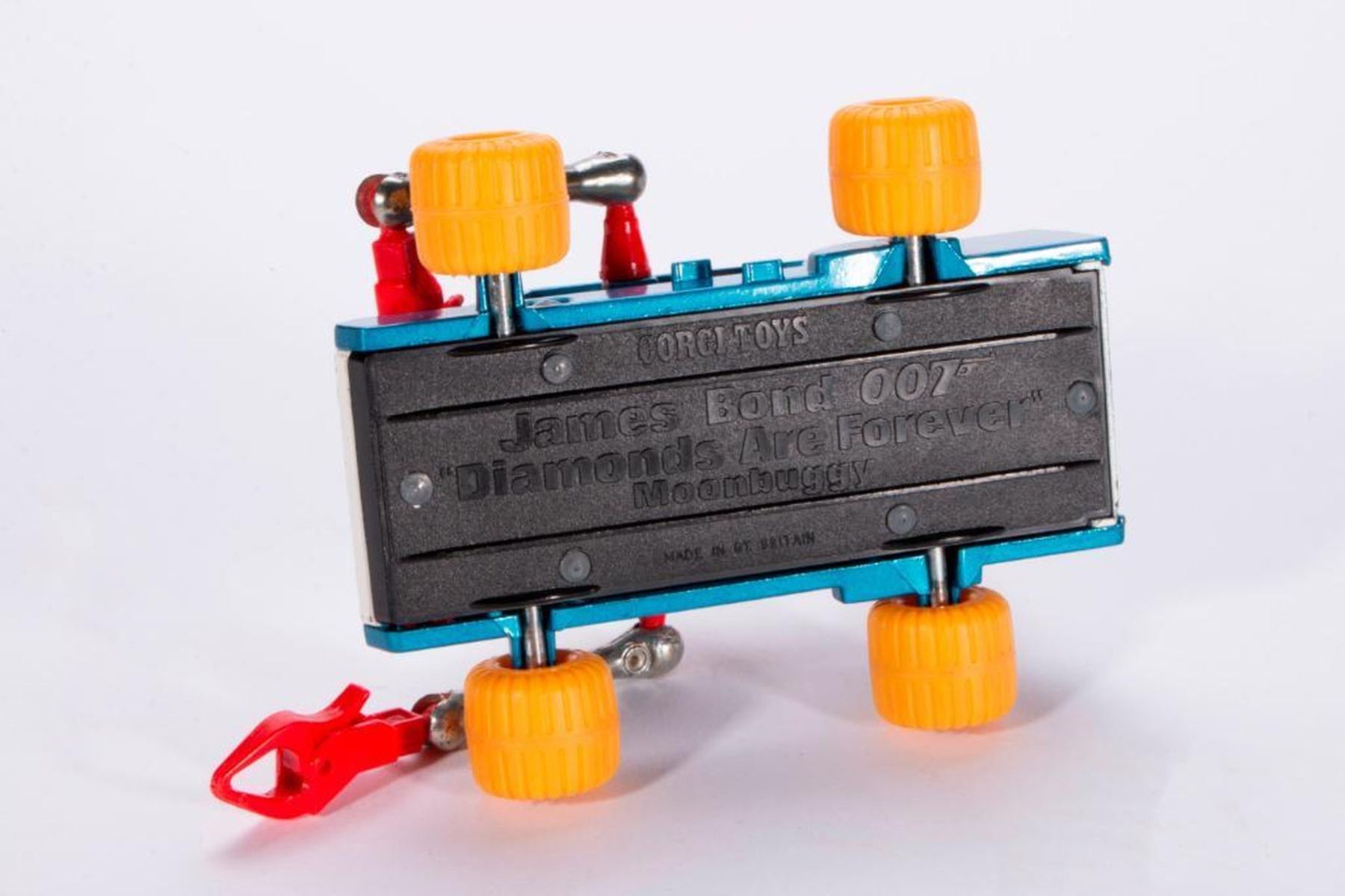 A Corgi Toys Moonbuggy from James Bond, "Diamonds Are Forever" measuring 3 1/4 inches high x 5 x 3 3/4. Items are sold as is. Please inquire about condition if not otherwise stated.