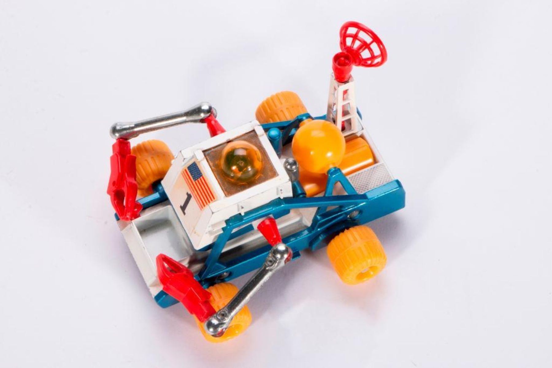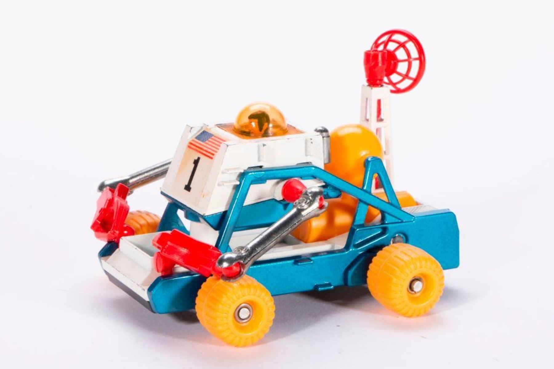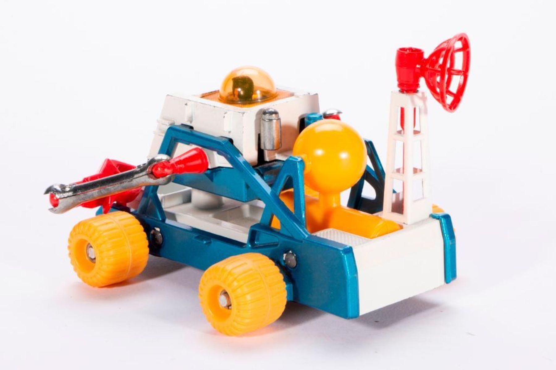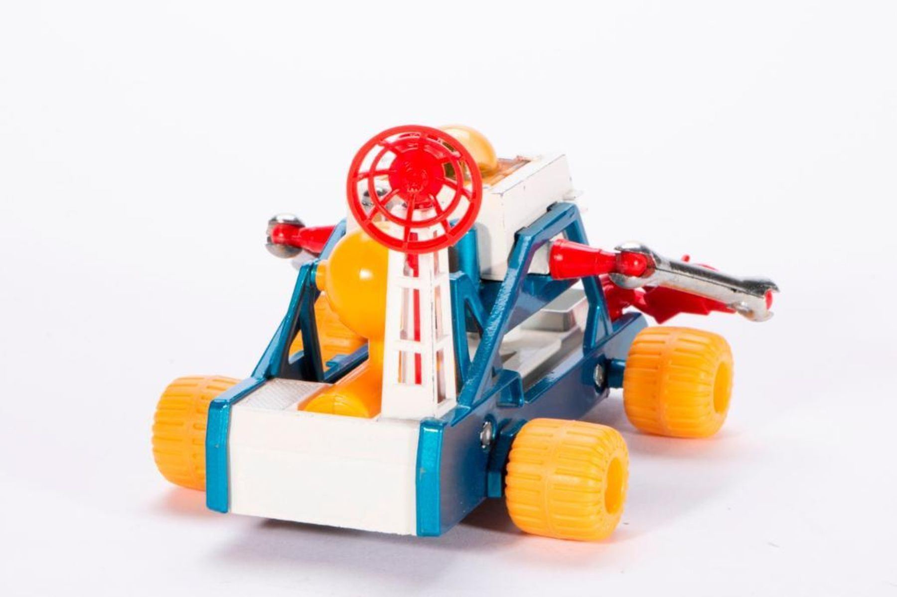 A Corgi Toys Moonbuggy from James Bond, "Diamonds Are Forever" measuring 3 1/4 inches high x 5 x 3 3/4. Items are sold as is. Please inquire about condition if not otherwise stated.