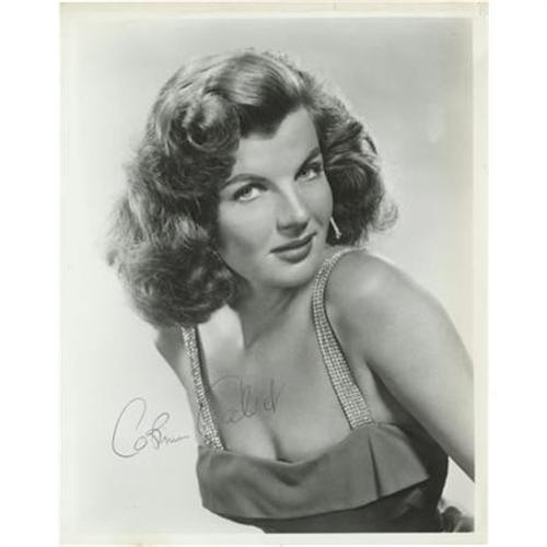 <B>Corinne Calvet Autographed Photo.</B></I> A b&w 8" x 10" photo of Corinne Calvet in black ballpoint. The stunning French actress appeared in a number of films in the '50s, starring opposite such leading men as Burt Lancaster, James Cagney, Jimmy Stewart, and others. In Very Good condition with age toning to the top and right borders, corner wear, and mild creasing to upper border (not affecting signature).<BR><BR><b>Shipping:</b> Flat Material, Small (<a target="_blank" href="http://www.heritageauctions.com/common/shipping.php">view shipping information</a>)