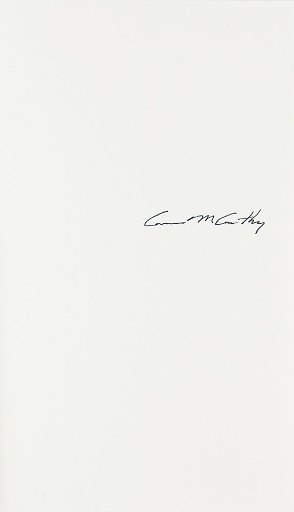 Signed book: Stella Maris. First edition. NY: Alfred A. Knopf, 2022. Hardcover with dust jacket, 6.5 x 9.5, 190 pages. Signed on a free end page in black felt tip by Cormac McCarthy. In very fine condition. An uncommon and desirable signed example of McCarthy's latest novel.