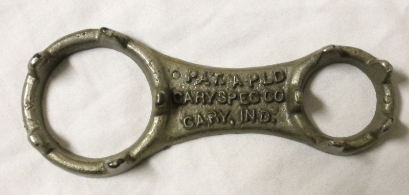 cast of heavy metal and then plated over galvanized. Pat. Applied for Cary Spec. Co. Cary, Ind. This is an original. 4 1/2" long. Corn sheller nubber/popcorn sheller.