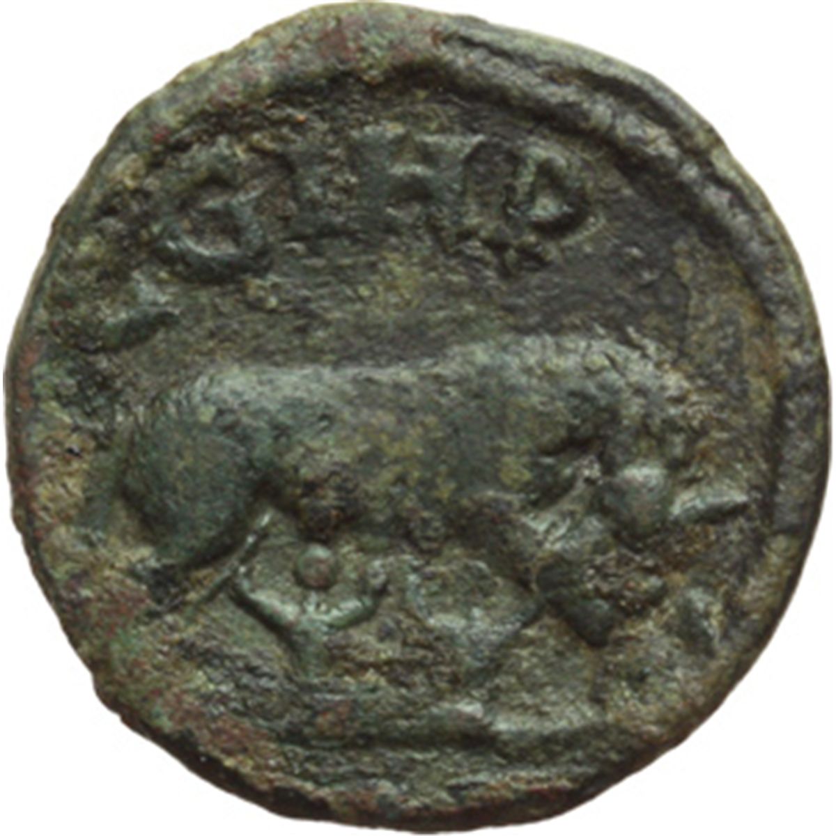 Impero Romano. Cornelia Supera, moglie di Emiliano (253 d.C.). AE 20mm. Parium, Mysia. D/ C. CORN. SVPERA AVG. Busto diademato e drappeggiato a destra. R/ C.G.I.H. Lupa a destra che allatta i gemelli. BMC-. Grose-. SNG France-. SNG von Aulock-. Cfr. Lanz 102(5/2001),944 dichiarato il 2¬8 esemplare conosciuto. AE. g. 5.11 RRRR. Di grande raritv†. Patina verde. BB.