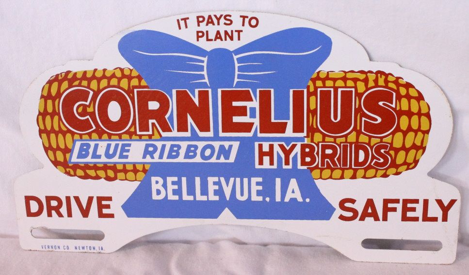 New oldstock. "It Pays to Plant Cornelius". Bellevue, Iowa. Made by Vernon Co., Newton, Iowa. Has super graphics! 10" x 5 1/4"
