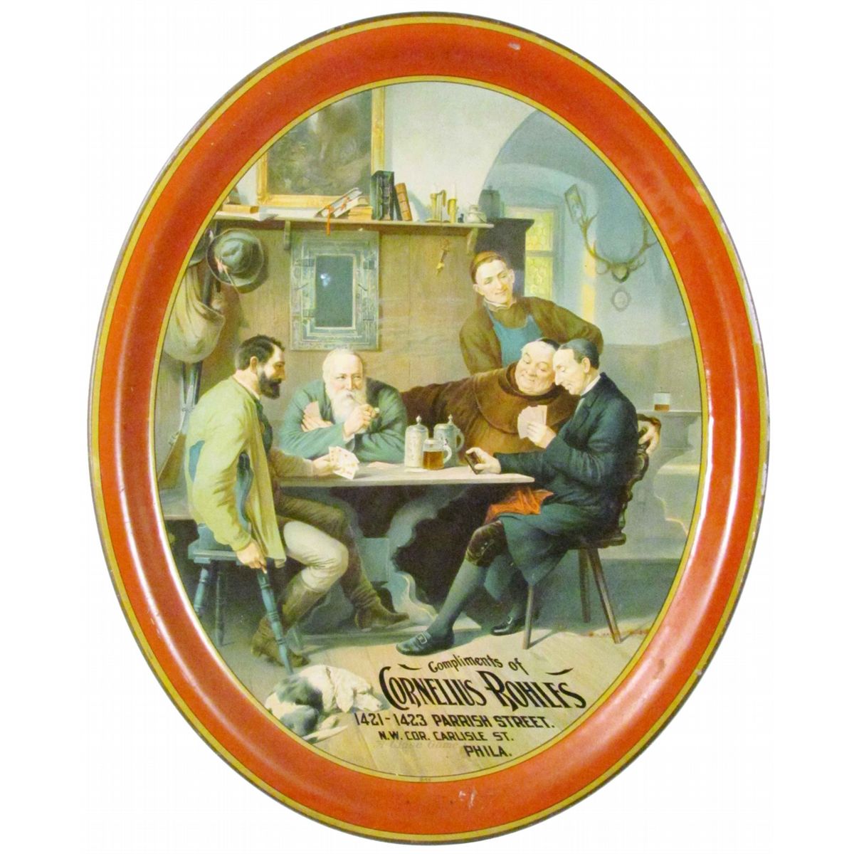 Cornelius Rohles Tin Serving Tray. Entitled, "A Close Game". Excellent condition. 13 3/4 X 16 1/2 inches.