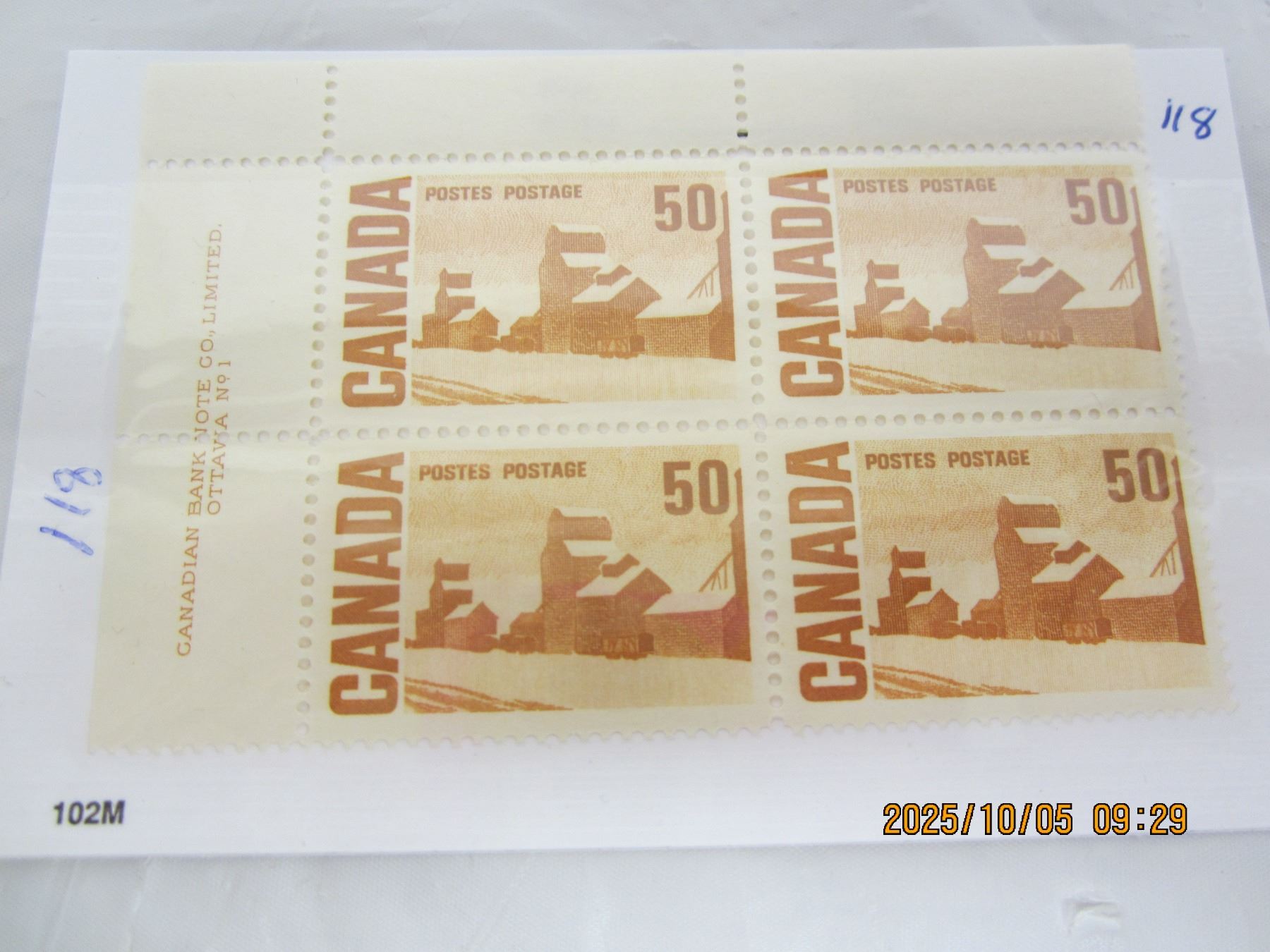 Corner Block of Canadian Stamps 50 Cent Grain Elevator MNH OG Never Used