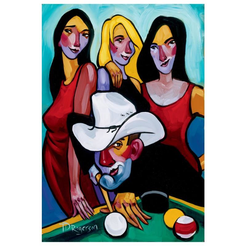 "Corner Pocket" is a limited edition giclee on stretched canvas, numbered and hand signed by Tim Rogerson. Includes Certificate of Authenticity! Measures approx. 15" x 22" (image).