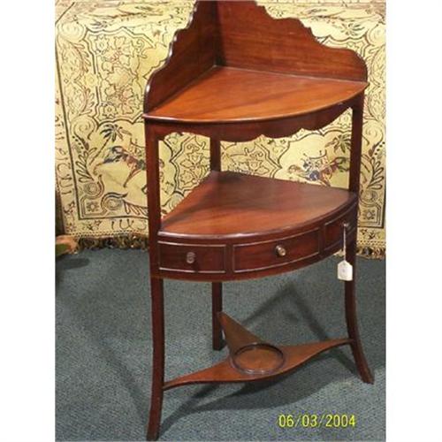 This is a Federal period Corner Wash Stand that dates from 1790-1810. It is in very good condition with only slight loss of trim.  The finish is very old, and there is a srinkage crack in the top shelf.  Please contact the seller to get the cost of shipping and handling.