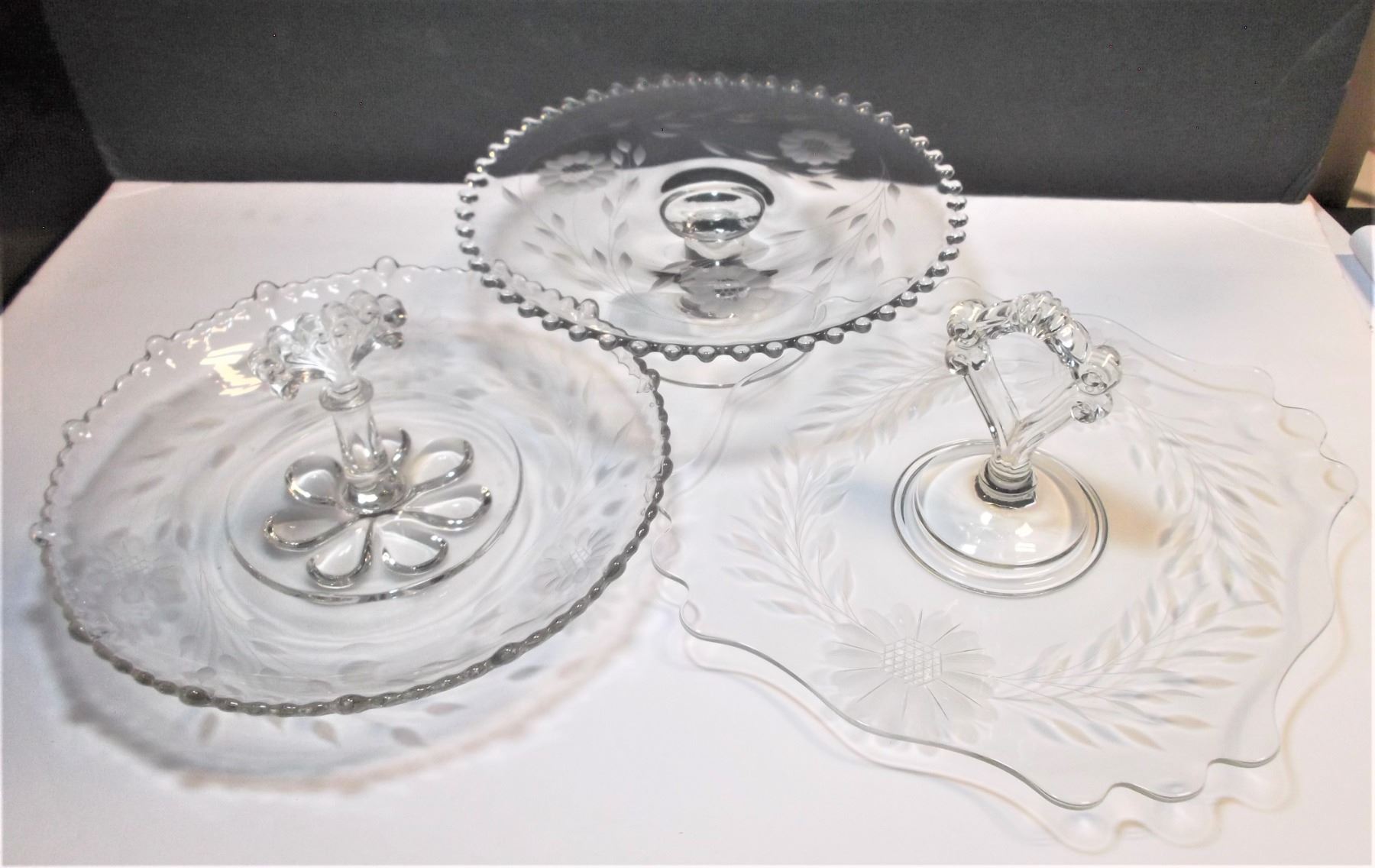 Cornflower Crystal Cake Plate and Two Sweet Trays