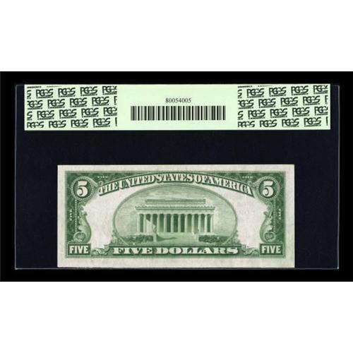 <B>Corning, IA</B></I> - $5 1929 Ty. 2 <B>The Okey -Vernon NB</B></I> Ch. # 8725<BR> Bold embossing, white paper, and dark inks combine to make this note a winner. Bank officers F.C. Okey and C.E. Okey were brothers and sons of A.F. Okey. A.F. Okey and C.H. Vernon, brothers-in-law, founded the bank in April 1900. <B>PCGS Choice New 63PPQ</B></I>.<BR><BR><b>Shipping:</b> Coins & Currency (<a target="_blank" href="http://www.heritageauctions.com/common/shipping.php">view shipping information</a>)