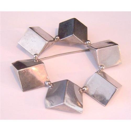 Silvertone pin with 6 pyramids, each divided by a silver ball. In excellent original condition.