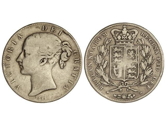 Corona. - 1844. - VICTORIA. - AR. Busto joven a izquierda. (Golpes). KM-741. BC+. - -