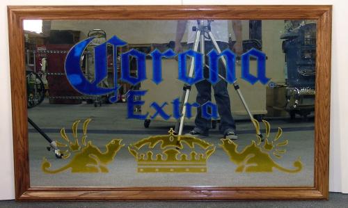 Corona Beer sign on mirrored glass large size 53"x33" great for home bar
