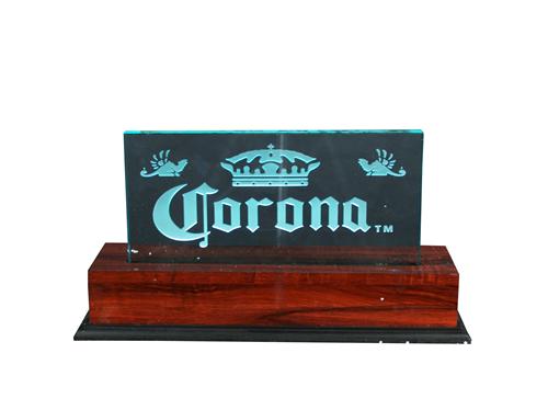 Corona Glass Edge-lit Sign w Wood base   Mint-in-box