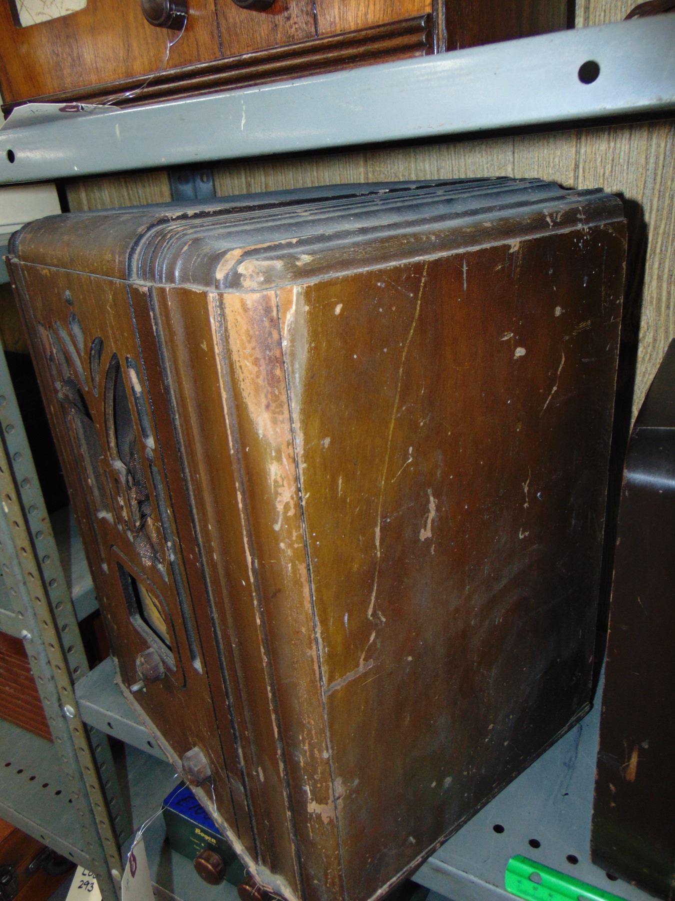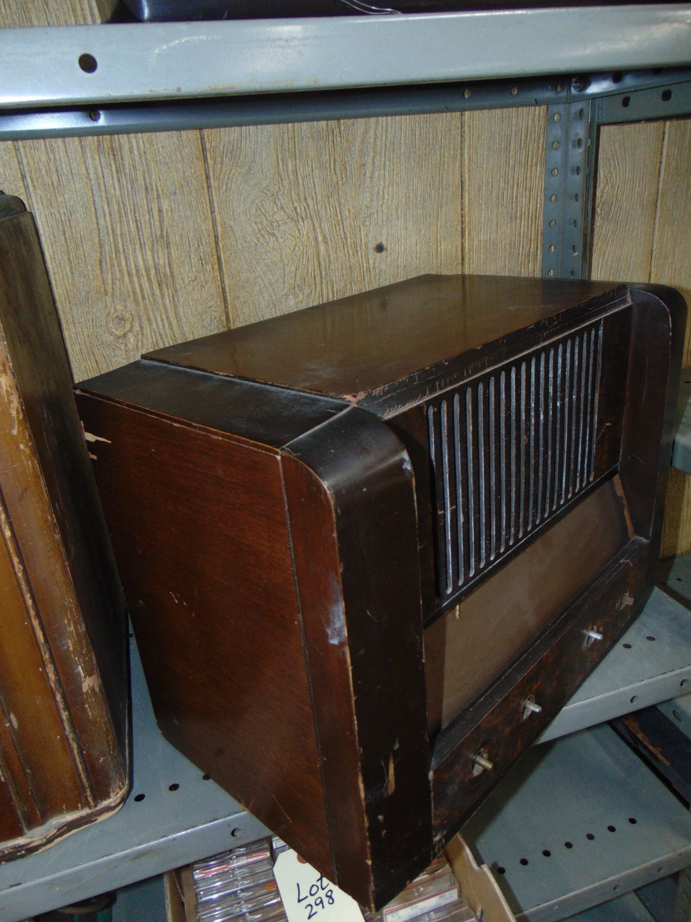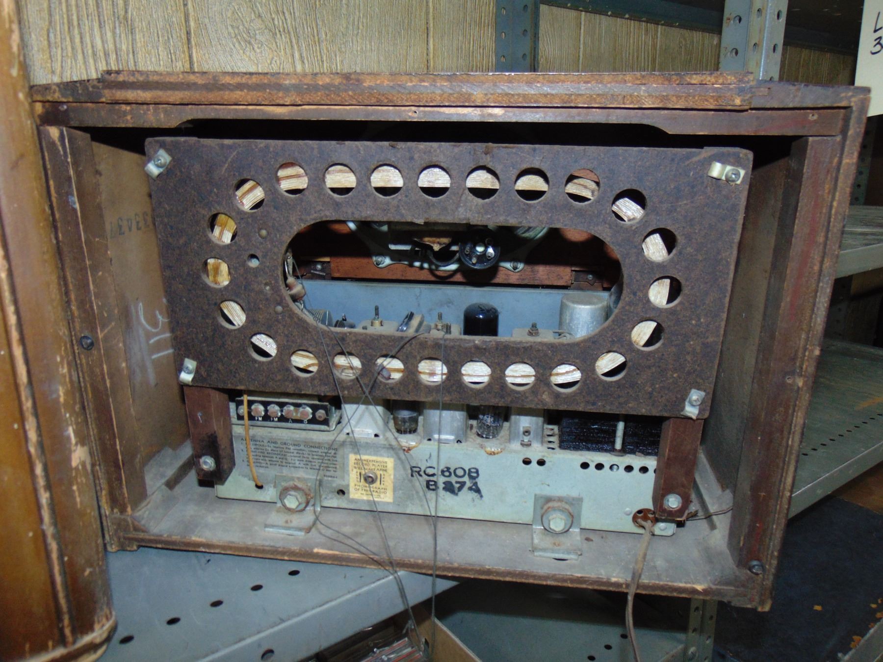 Large wood table set; ALSO, large RCA wood table set, model RC-608, missing parts