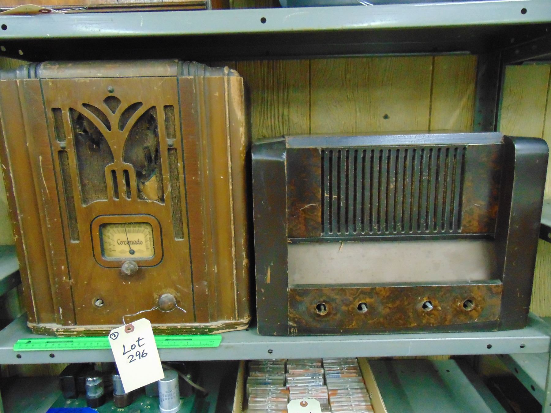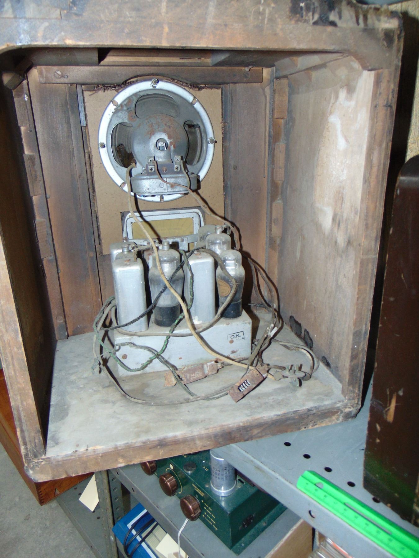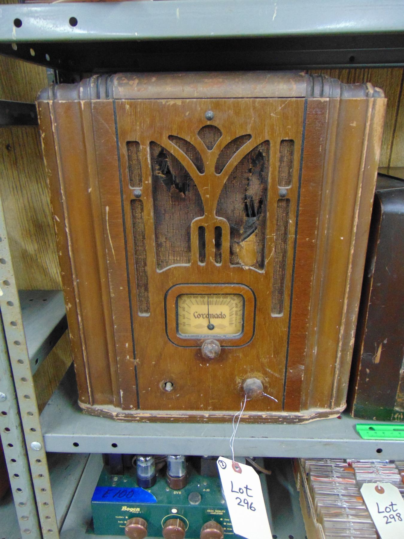 Large wood table set; ALSO, large RCA wood table set, model RC-608, missing parts