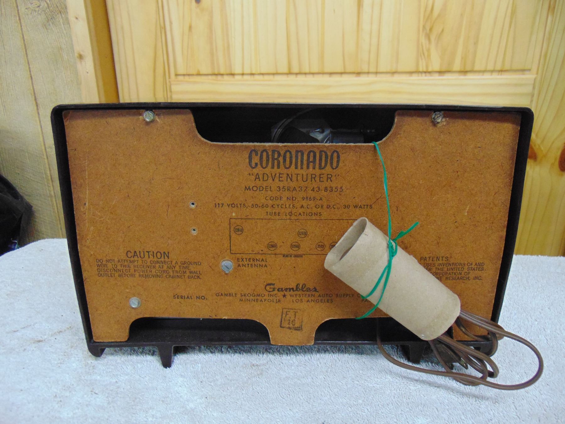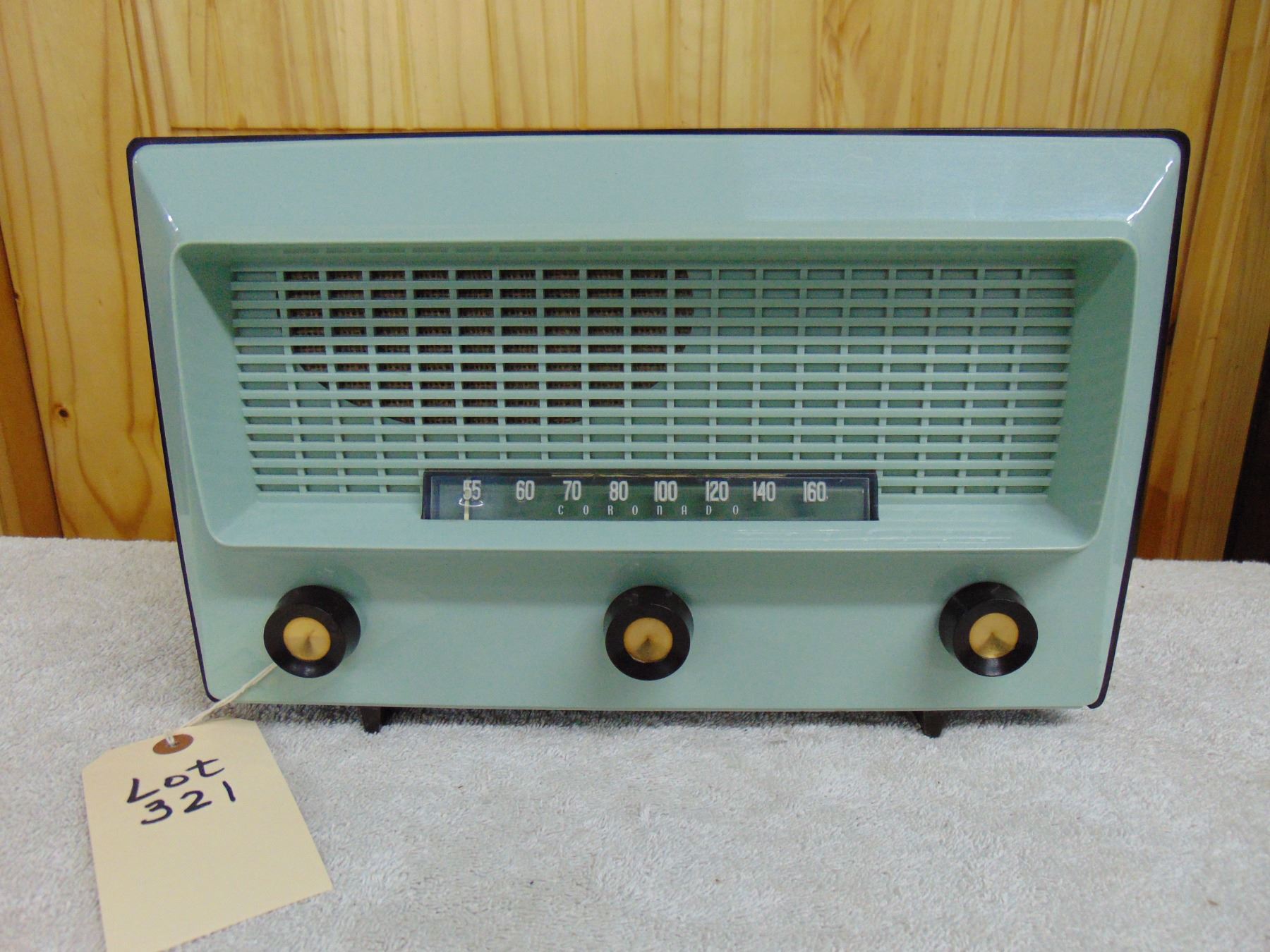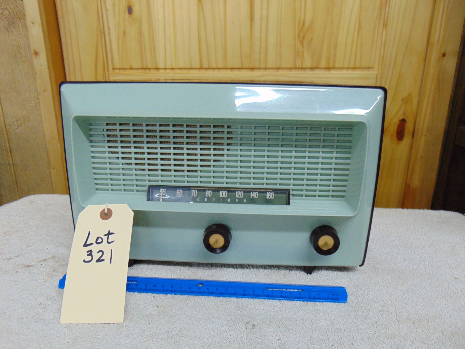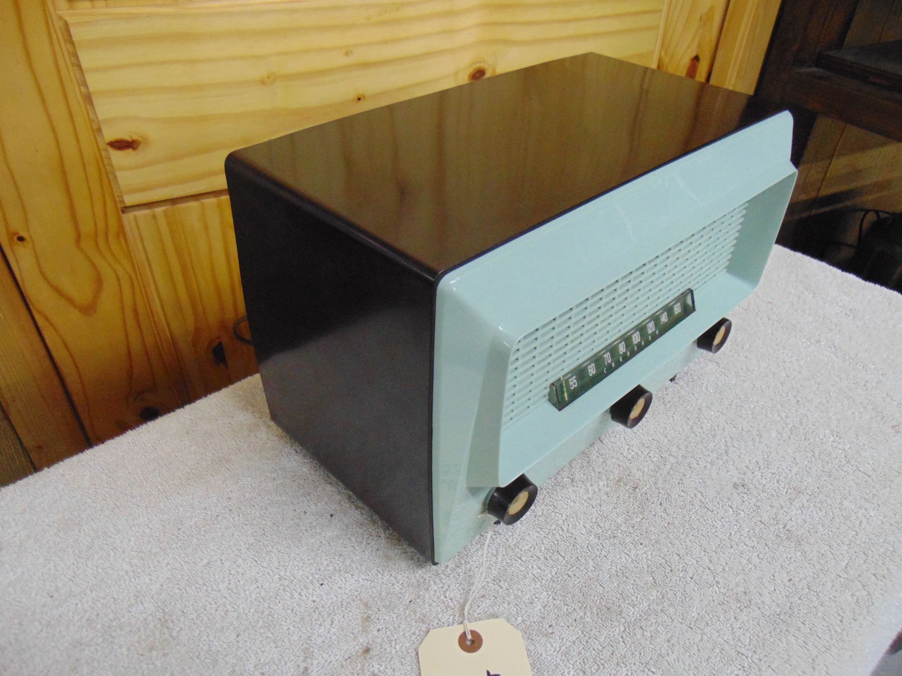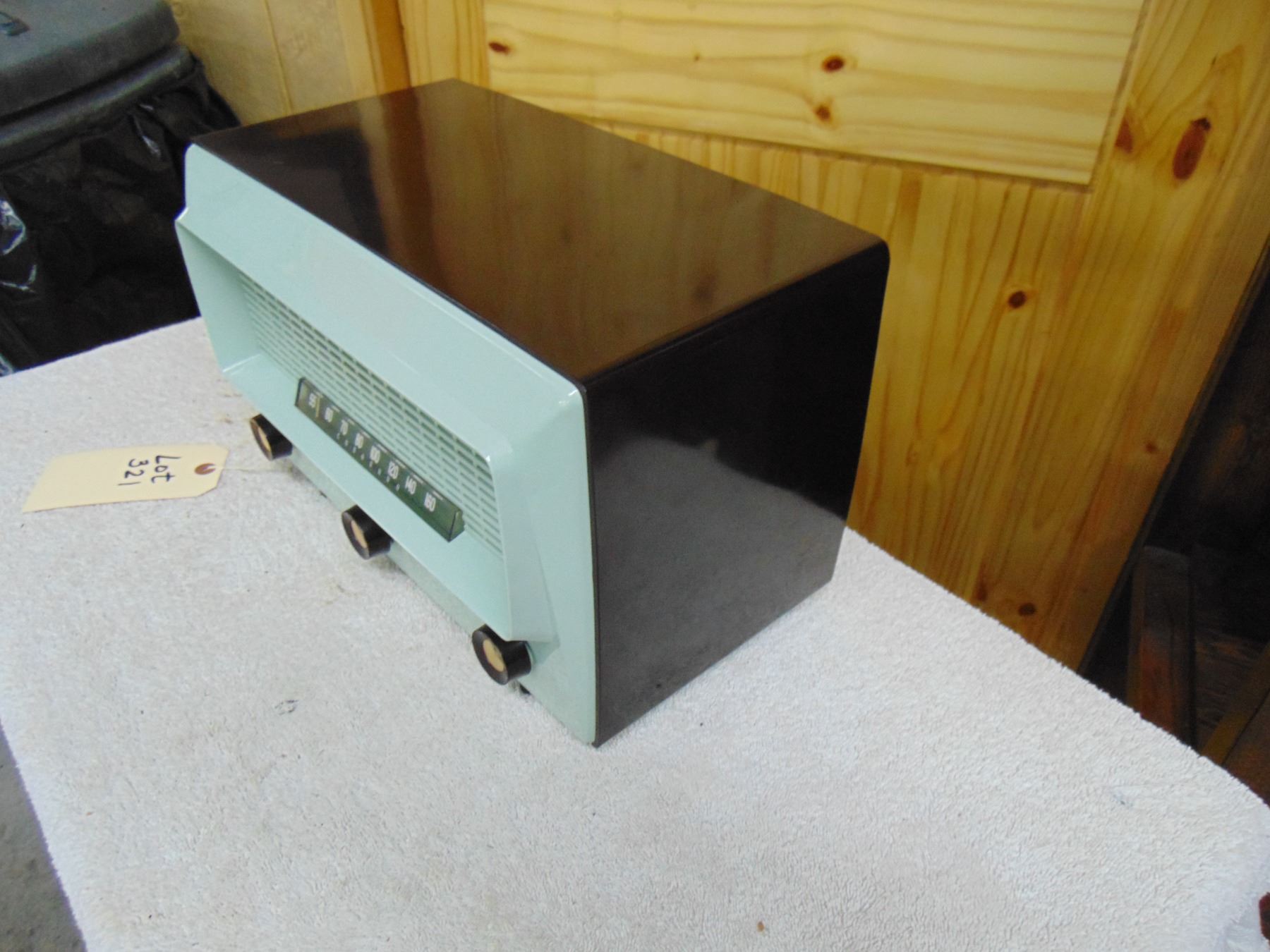 Black bakelite with pale blue front; model 35RA37-43-8355; works; very nice