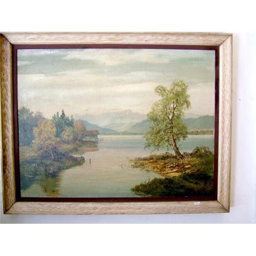 Fine, good size landscape ,lake and mountains, French from the Corot´s school , excellent painting job, full of details. 32iW and 21iH