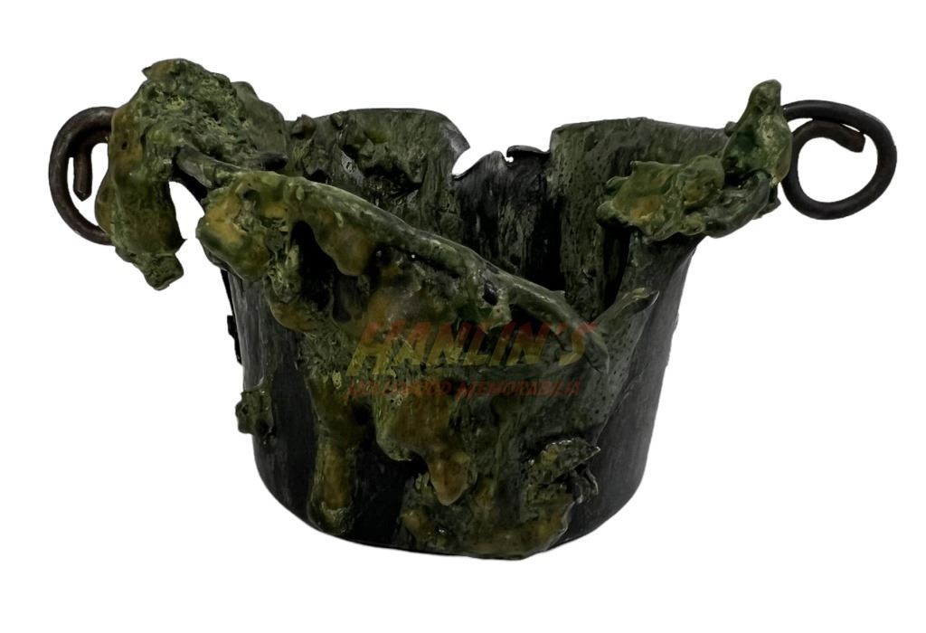 Original prop cooking pot with nasty remnants used in the Tim Burton directed stop-motion animated musical dark comedy 'Corpse Bride' (2005), where a shy groom practices his wedding vows in the inadvertent presence of a deceased young woman, she rises from the grave assuming he has married her.