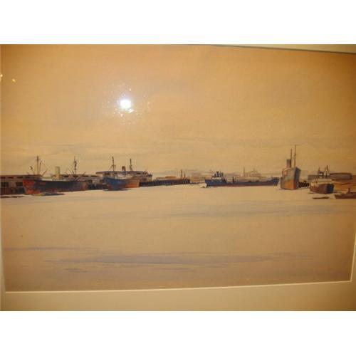 This is a very appealing harbor scene. The signature is visible,slants to right and is difficult to read. Maybe someone can identify as to the style of work.