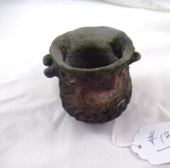 Corrugated lugged olla measuring approximately 3x3 inches. Condition shows some minor nicks. As found on private land. Shipping $14.50