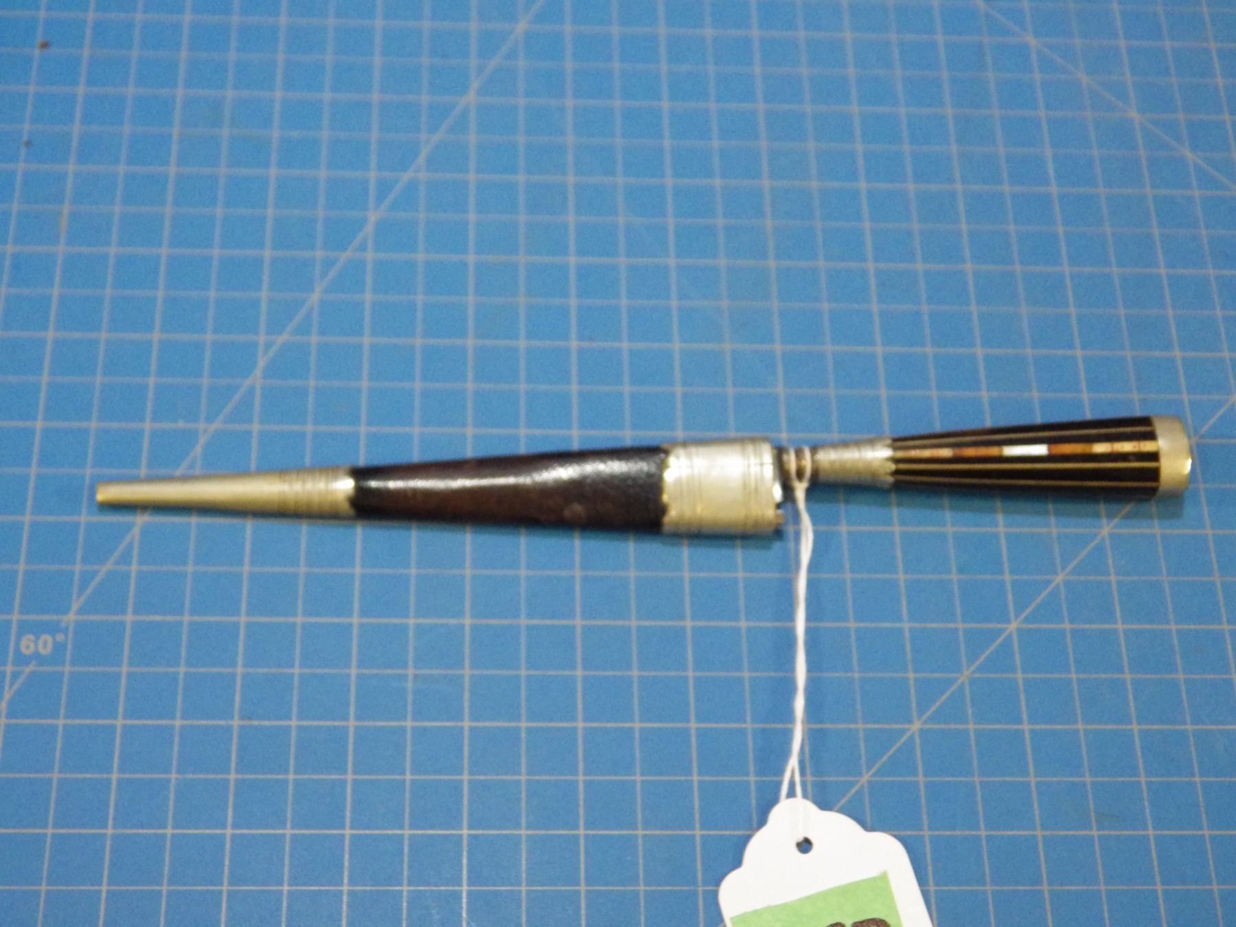 Corsican vendetta dagger with 5 3/4" double edged blade, with silver fittings on sheath and handle,